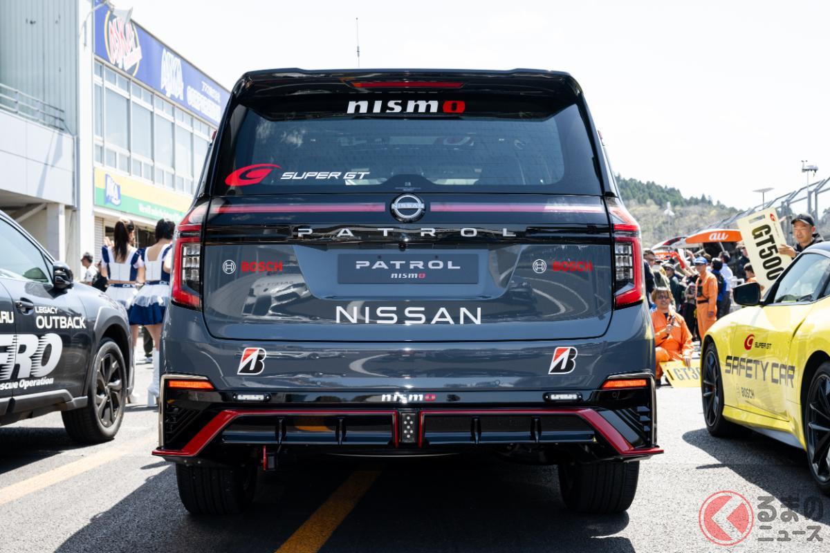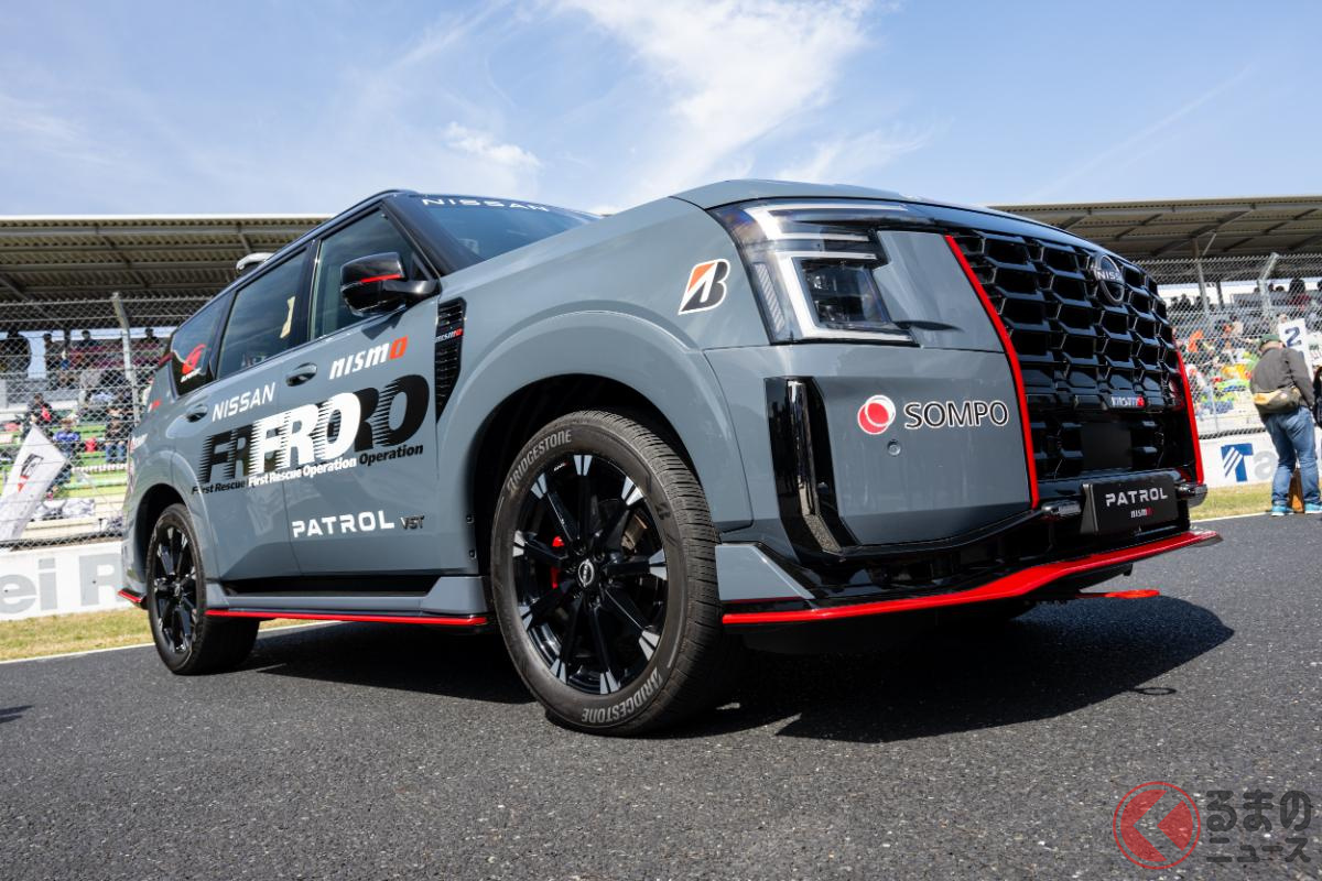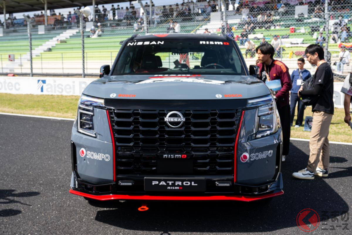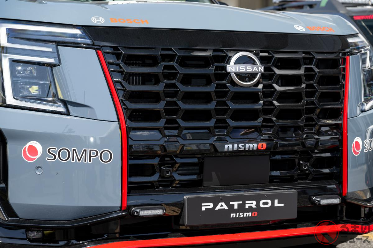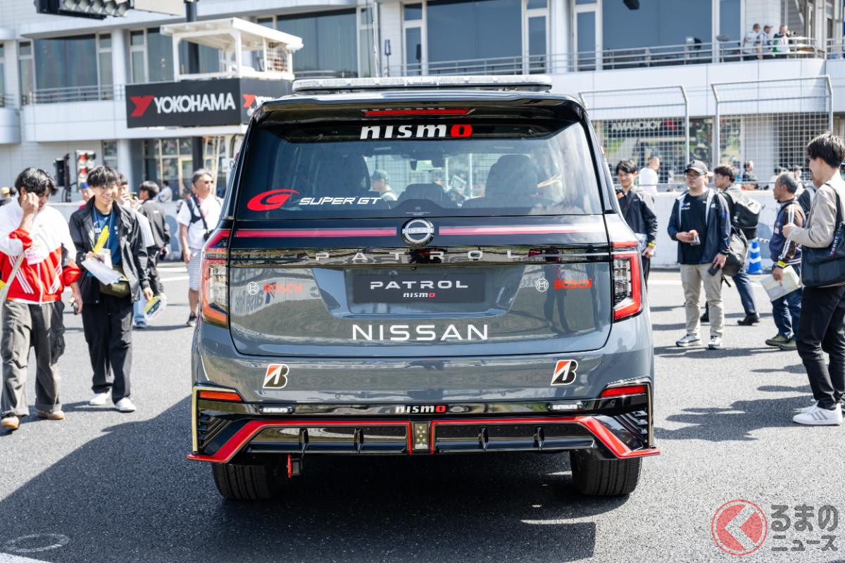 3.5L V6ツインターボで495馬力! 日産新型「超速そうな巨大SUV」公開! 標準は27年発売だけどドデカグリルの「パトロールNISMO」出る? スーパーGTに贈呈で聞いてみた