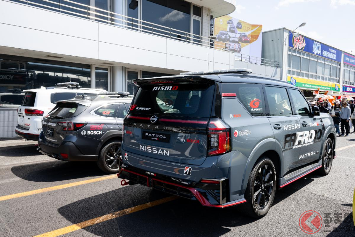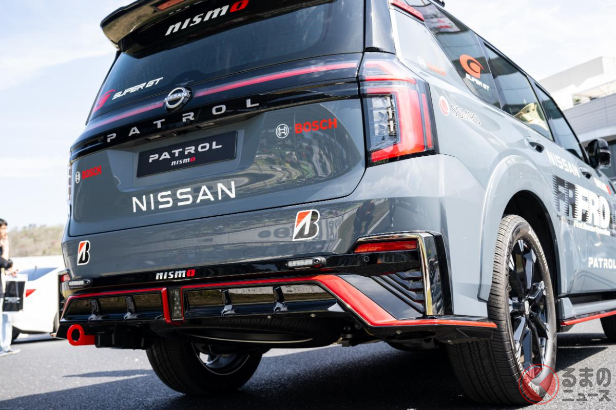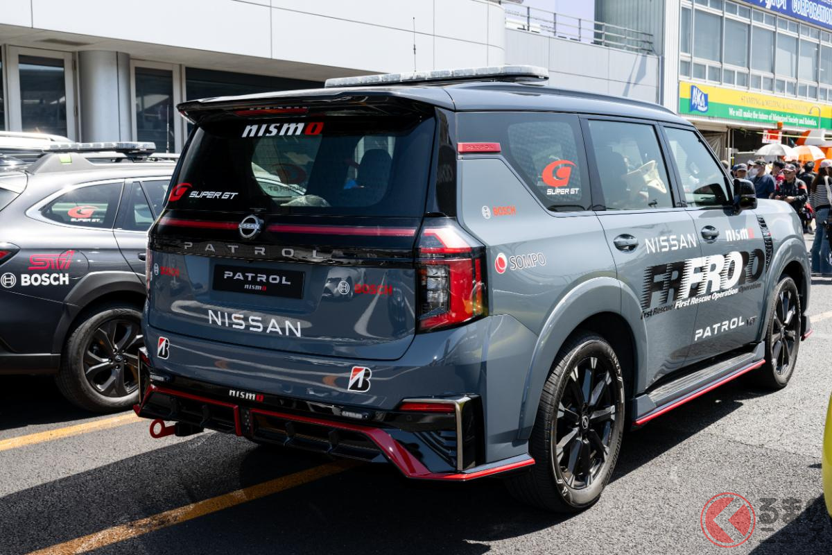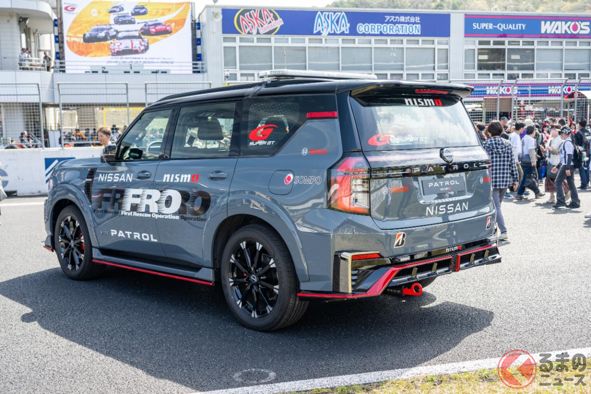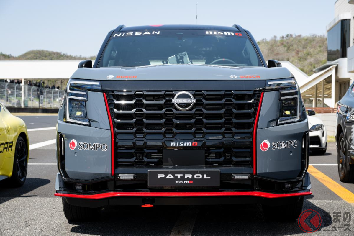 3.5L V6ツインターボで495馬力! 日産新型「超速そうな巨大SUV」公開! 標準は27年発売だけどドデカグリルの「パトロールNISMO」出る? スーパーGTに贈呈で聞いてみた