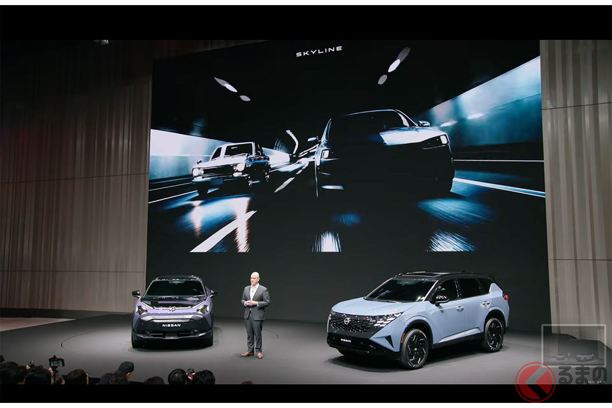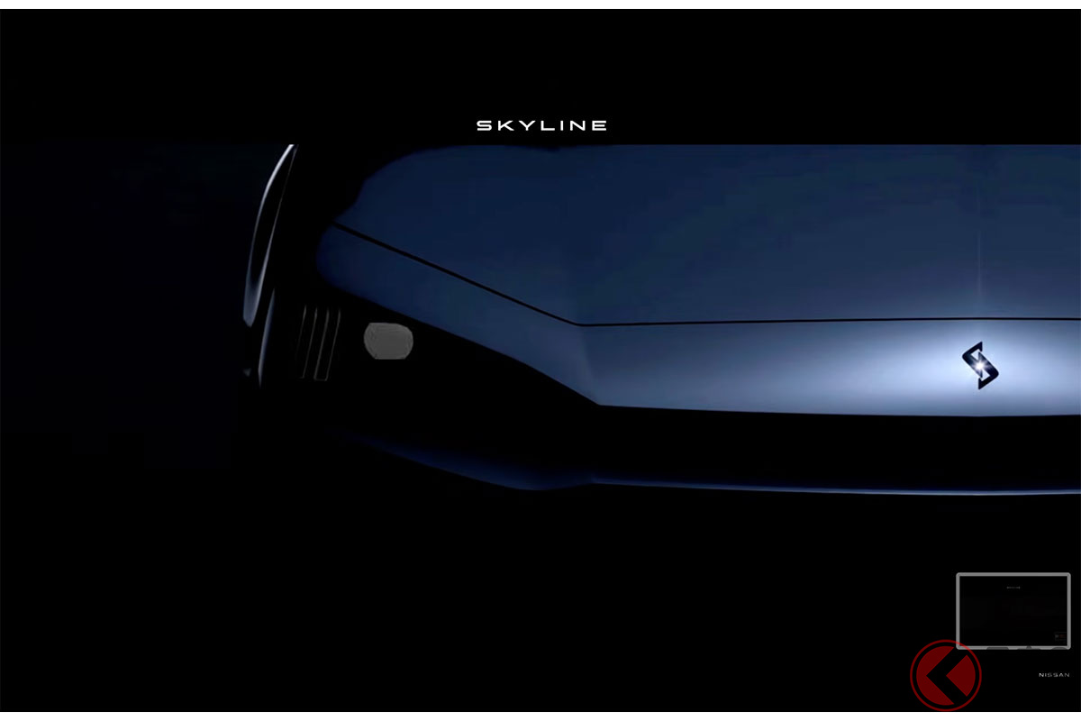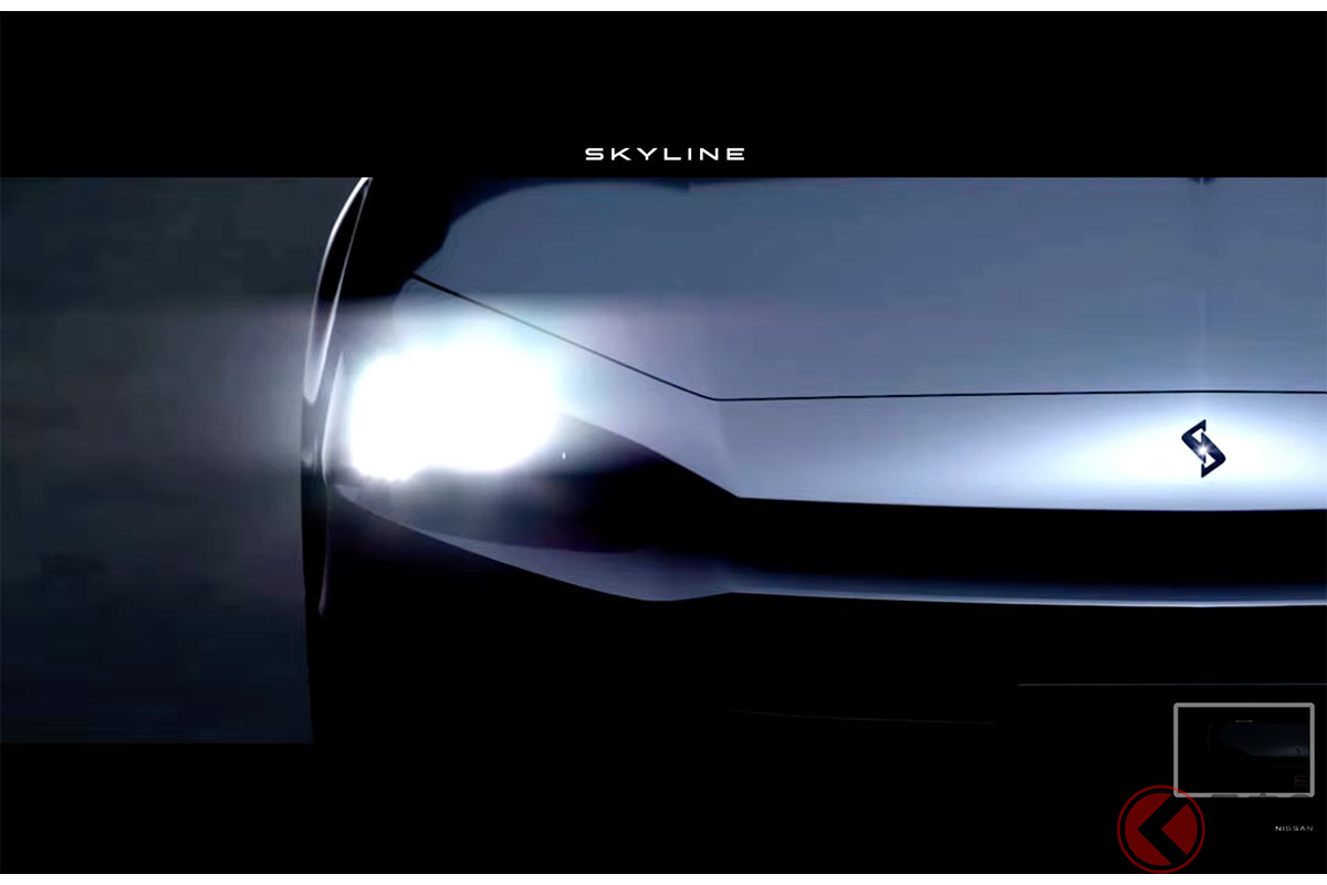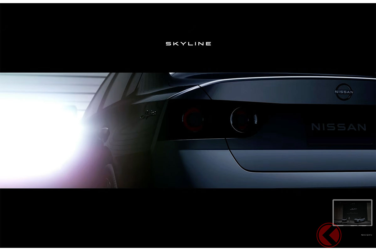 日産「新型スカイライン」世界初公開! 日産の「源流と魂の象徴」となる「スポーツセダン」は“歴代オマージュ”デザイン採用! 長期ビジョン発表でティザー画像を披露