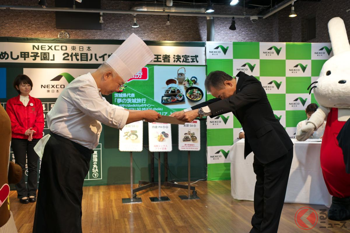 2026年4月14日、NEXCO東日本が主催するグルメコンテスト「第2回 ハイウェイめし甲子園 2代目ハイウェイめし王者決定戦」の表彰式が開催されました。11万票を超える利用者投票のなかから1位を獲得したのは、茨城県の常磐道「友部SA(上り線)」でした。どのようなメニューだったのでしょうか。