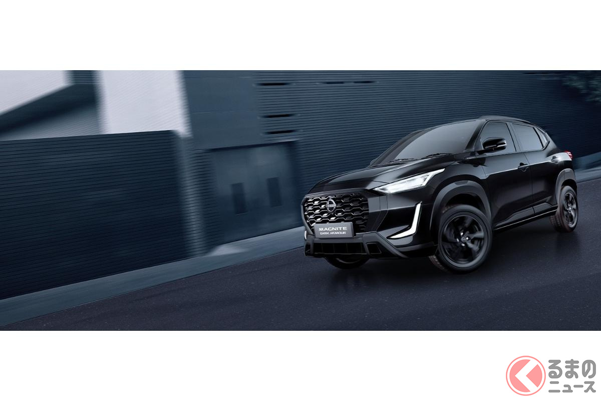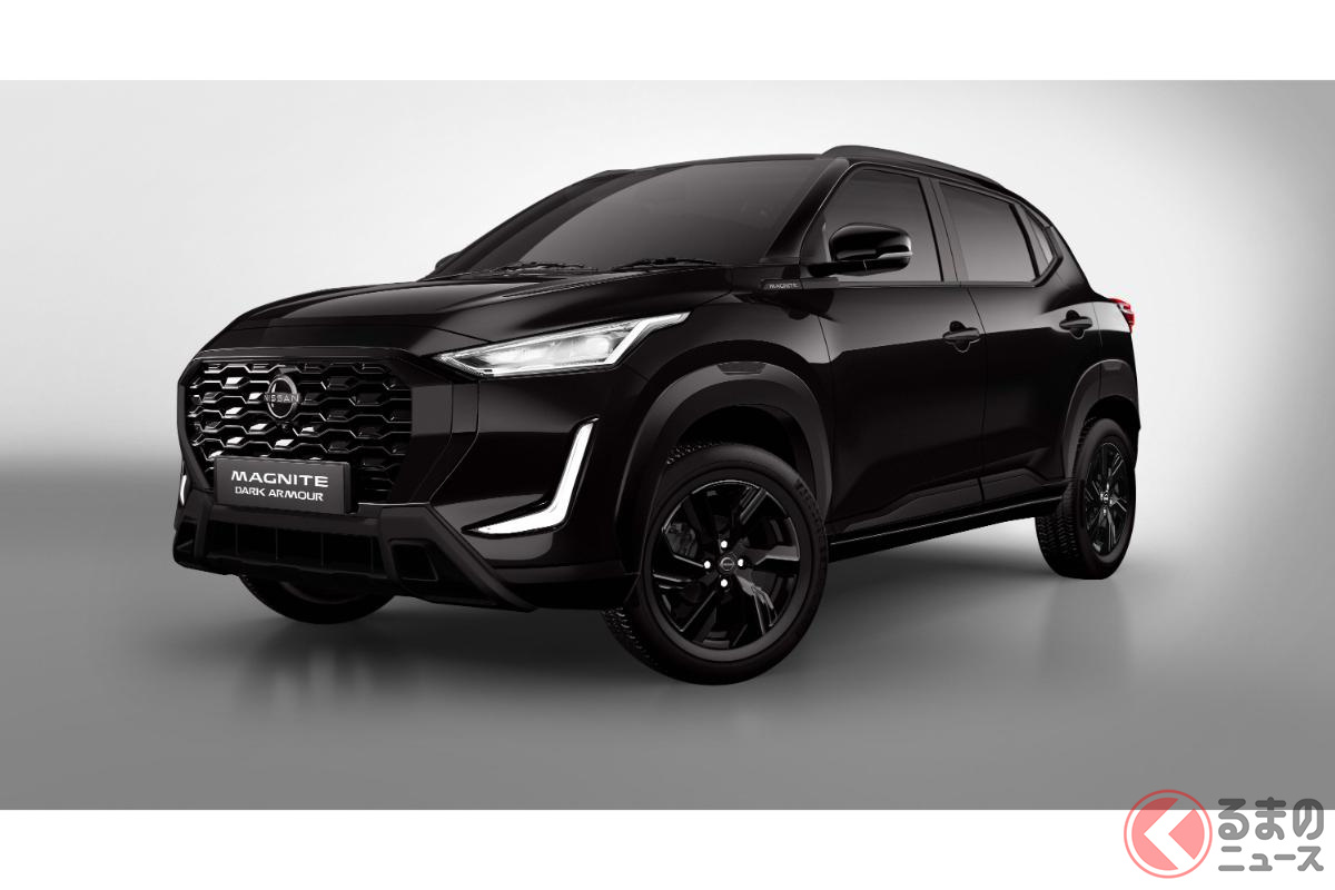 “トヨタ「ライズ」サイズ“の日産”新“「ちいさなSUV」! 黒い「悪顔」がいい「ダークアーマー」! 全長4m以下&1リッター「直3」搭載の「マグナイト」墨国モデルとは
