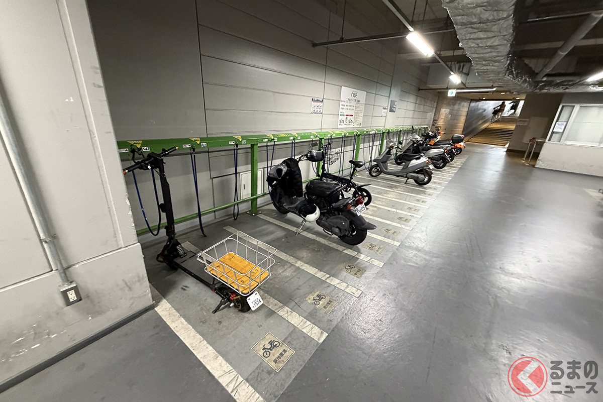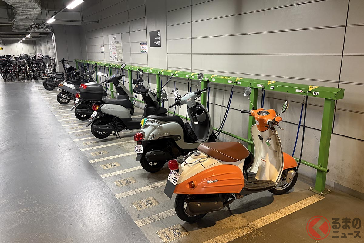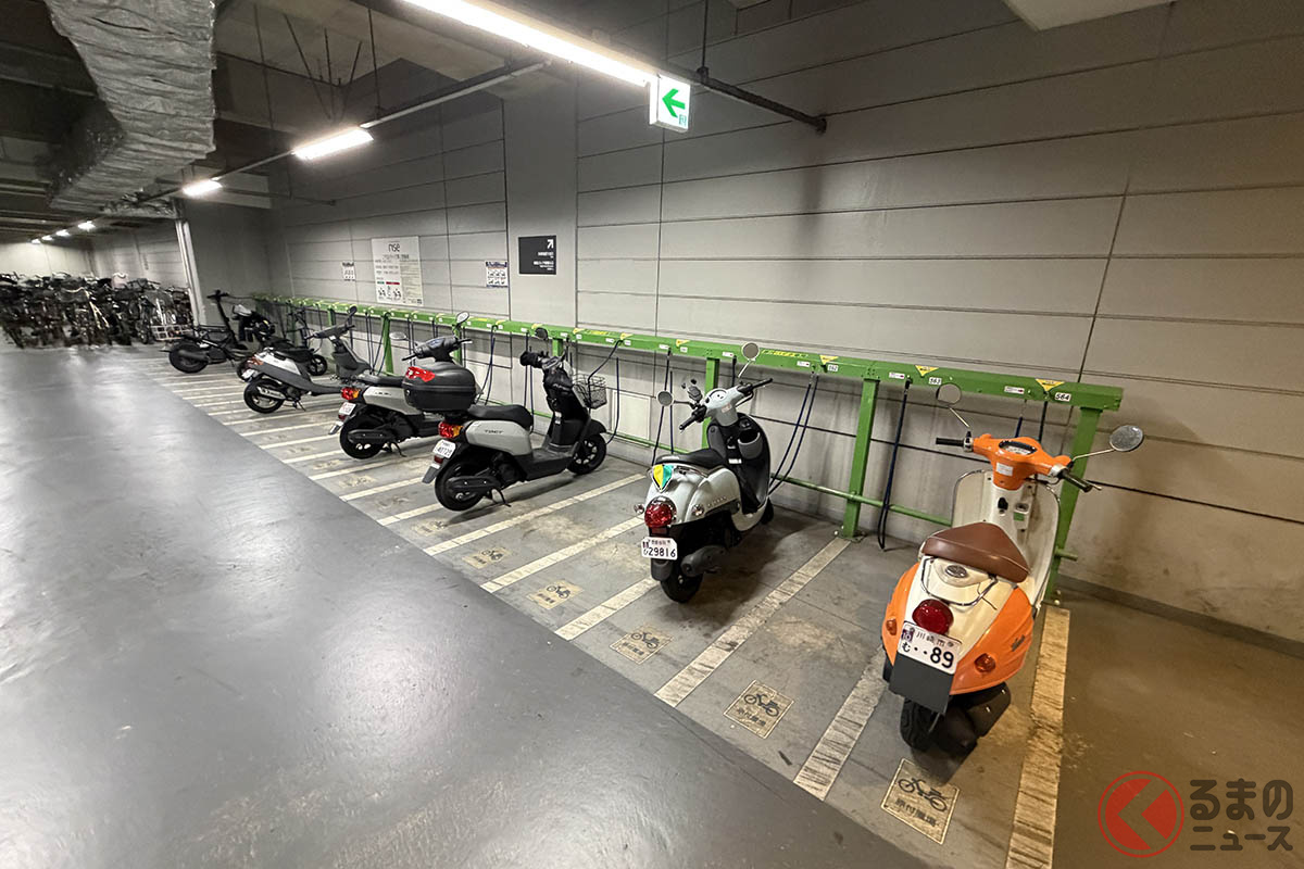 “50cc以上”なのに“原付免許”で乗れる「新基準原付」は屋内駐輪場に停められない!? 車体は大きくても“白ナンバー”で扱いは“原付”? 悩ましい駐輪場事情