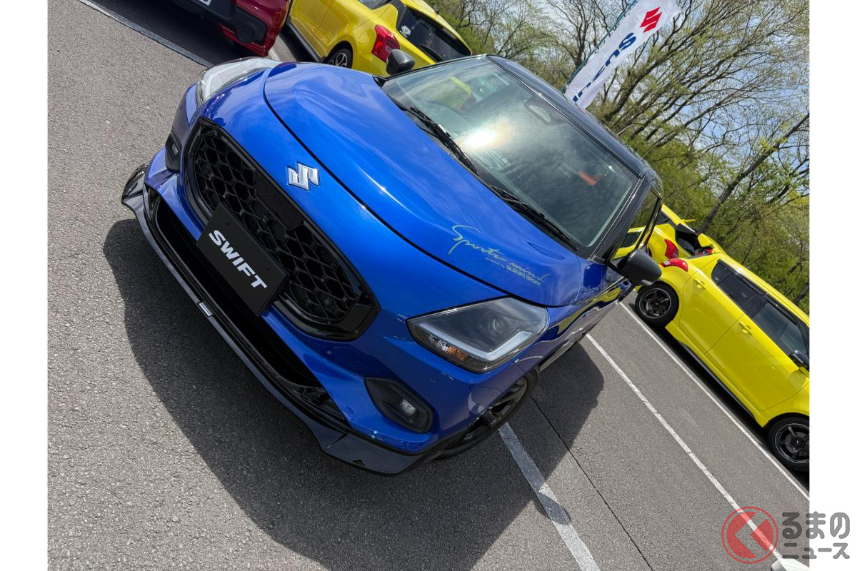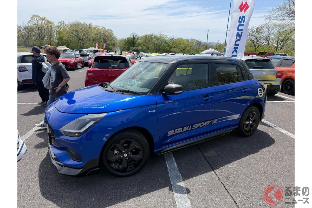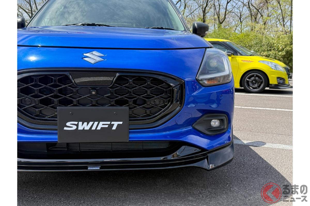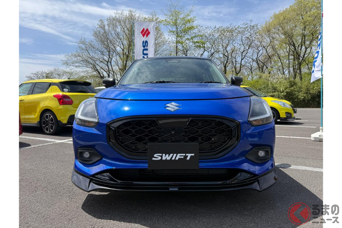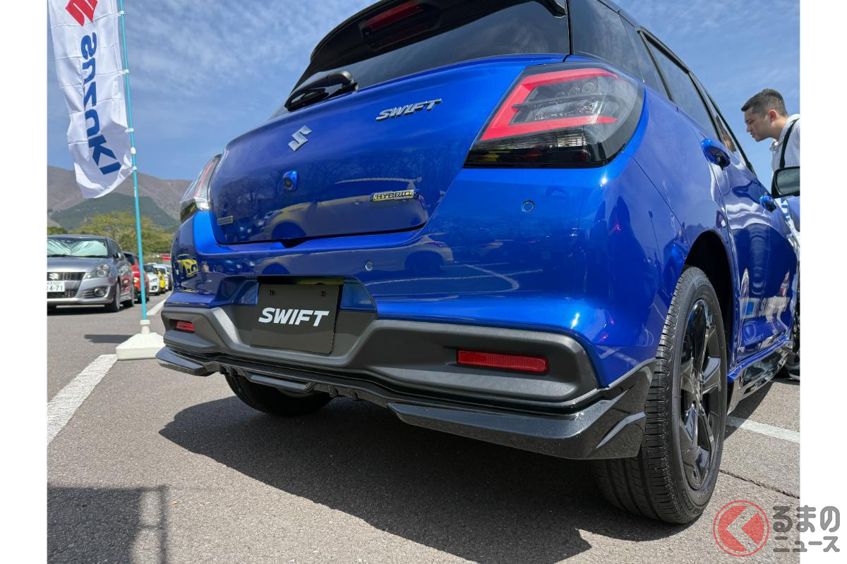 スズキ「小さなスポーツ仕様」初公開! 市販化は? 黒パーツ&「SUZUKI SPORT」エンブレム付与! スイフトエアロ仕様の反響上々で今後に期待