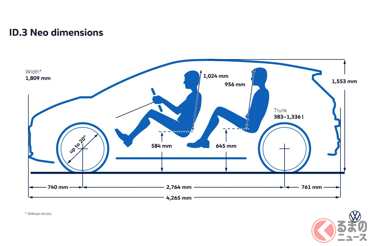 トヨタ「アクア」より大きい「“新型” コンパクトカー」初公開! 全長4.2mの“ちょうどいいサイズ”&レトロ風デザイン採用! 「231馬力」の高性能モデルもあるVW「ID.3 Neo」独国で登場
