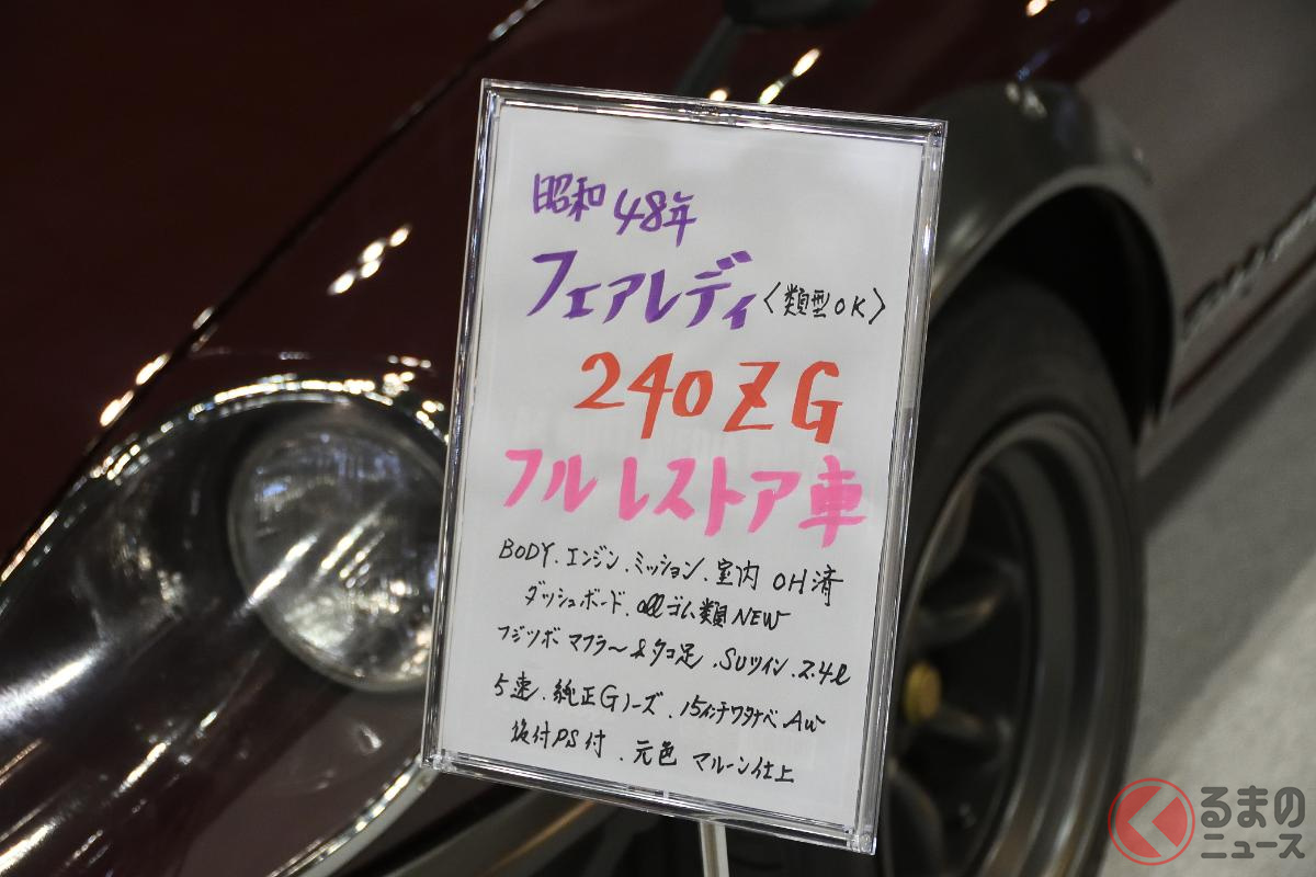 オートモビルカウンシル2026に出展した「ヴィンテージ宮田自動車」は、美しく仕上げたフルレストア車の日産「240ZG」を展示。その価格にも注目が集まりました。