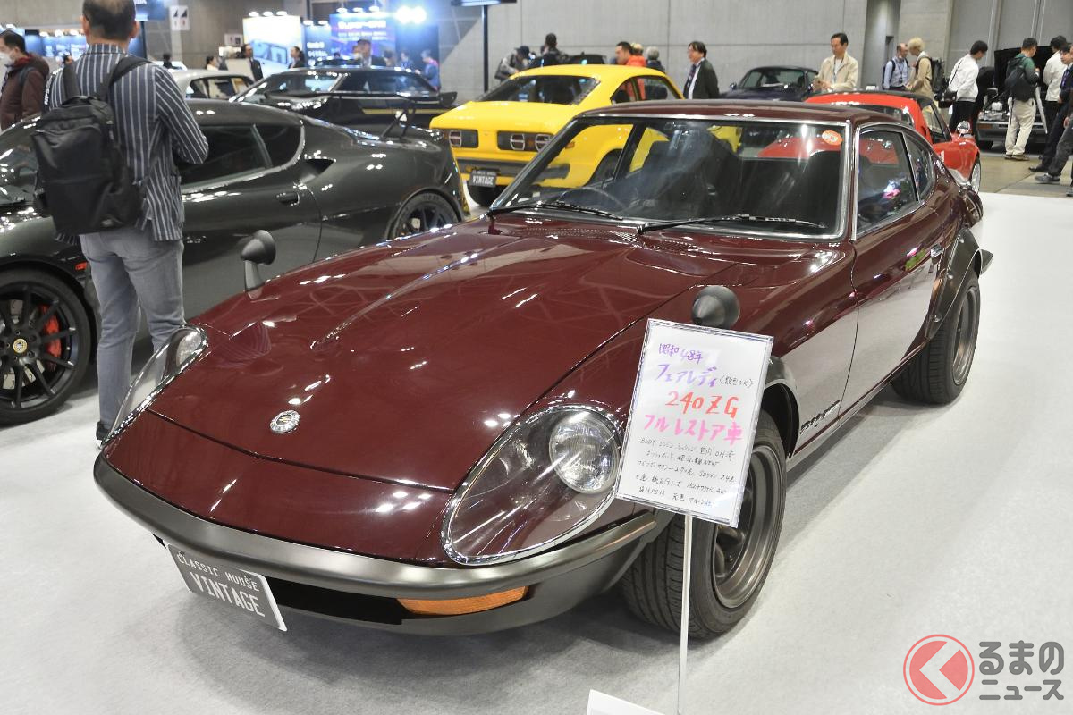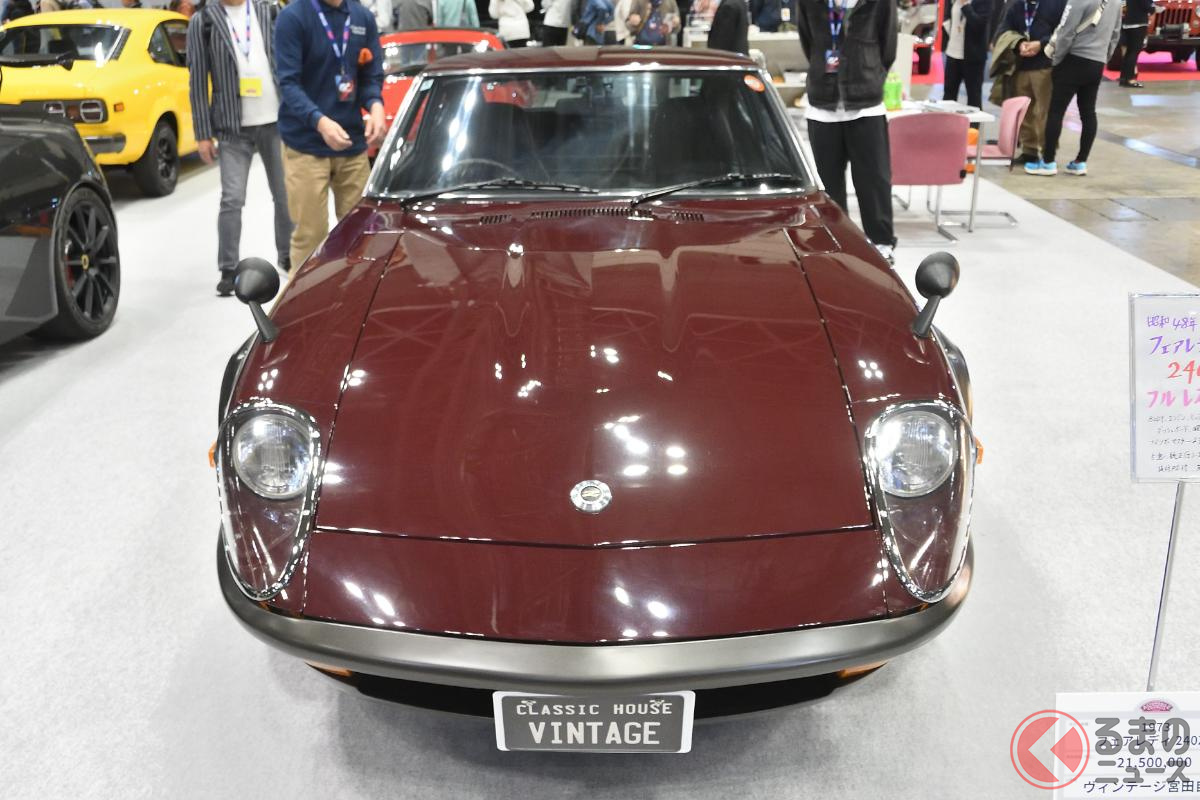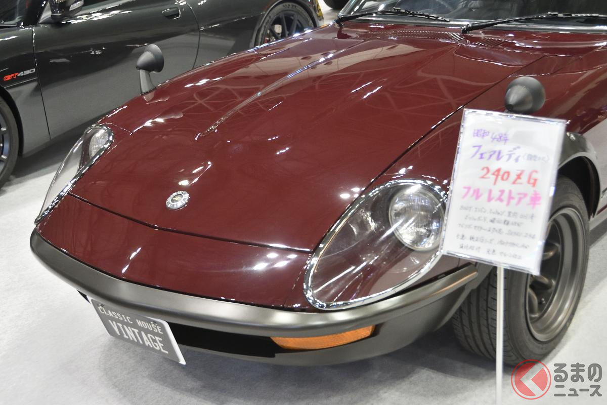 2000万円超えの日産「“2シーター”スポーツカー」実車展示! 超「美麗」仕上げの丸目レトロ顔モデル! 超希少“Gノーズ”もイイS30型「フェアレディZ“240ZG”」に熱視線!
