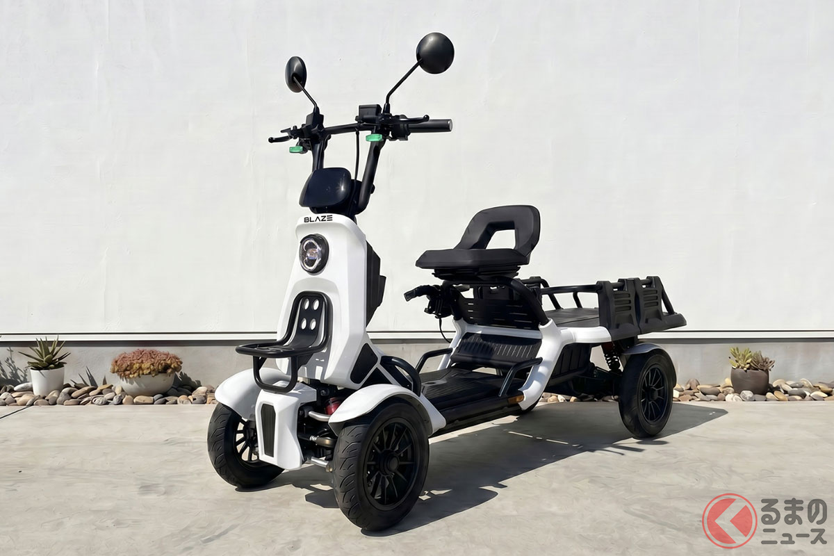 新車54万円! 免許なしで乗れる新型「チビ軽トラ」発売に反響あり! 「高齢者の移動手段にいい」「4輪で安心」と期待の声! ガソリン代0円で“最大100km”走れるブレイズ「イーカーゴ」とは!