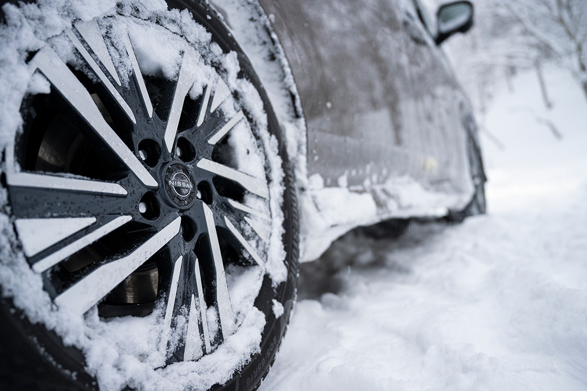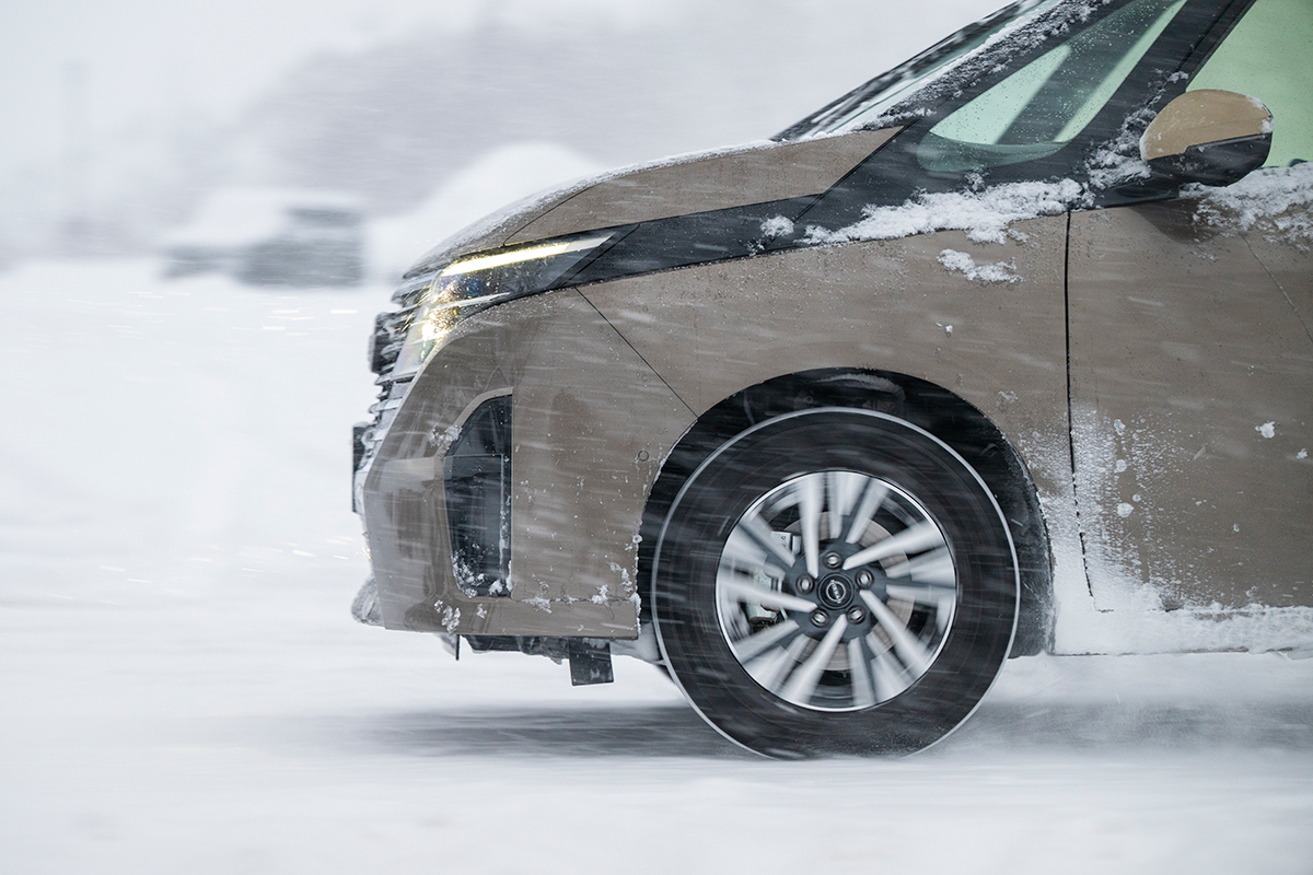 e-4ORCEはクルマの動きを安定させるために、モーターのトルクとブレーキを瞬間的に緻密に統合制御。 滑りやすい路面でアクセルを操作してもトルクを最適に制御するため、雪の積もった路面でもスムーズに発進できる