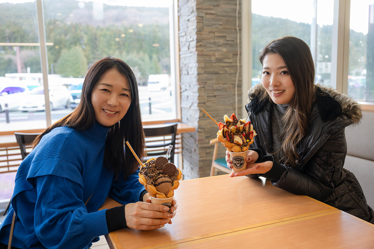 さらにサービスエリアではSNS映えしそうなスイーツもいただくお二人