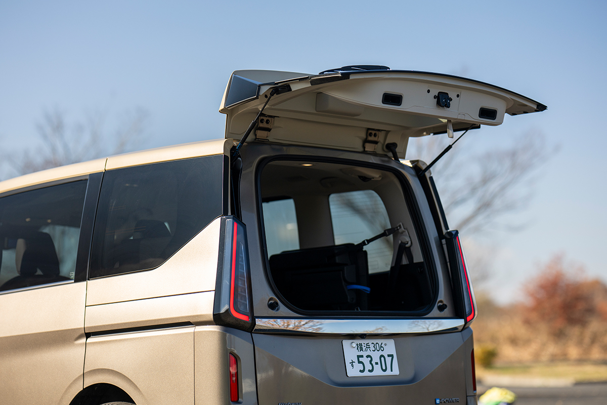 バックドアには、通常の約半分のスペースがあれば開閉できるハーフバックドアが設定されており、後ろに止まっているクルマや壁からの距離が近くても、気軽にドアを開けて荷物の出し入れが可能だ