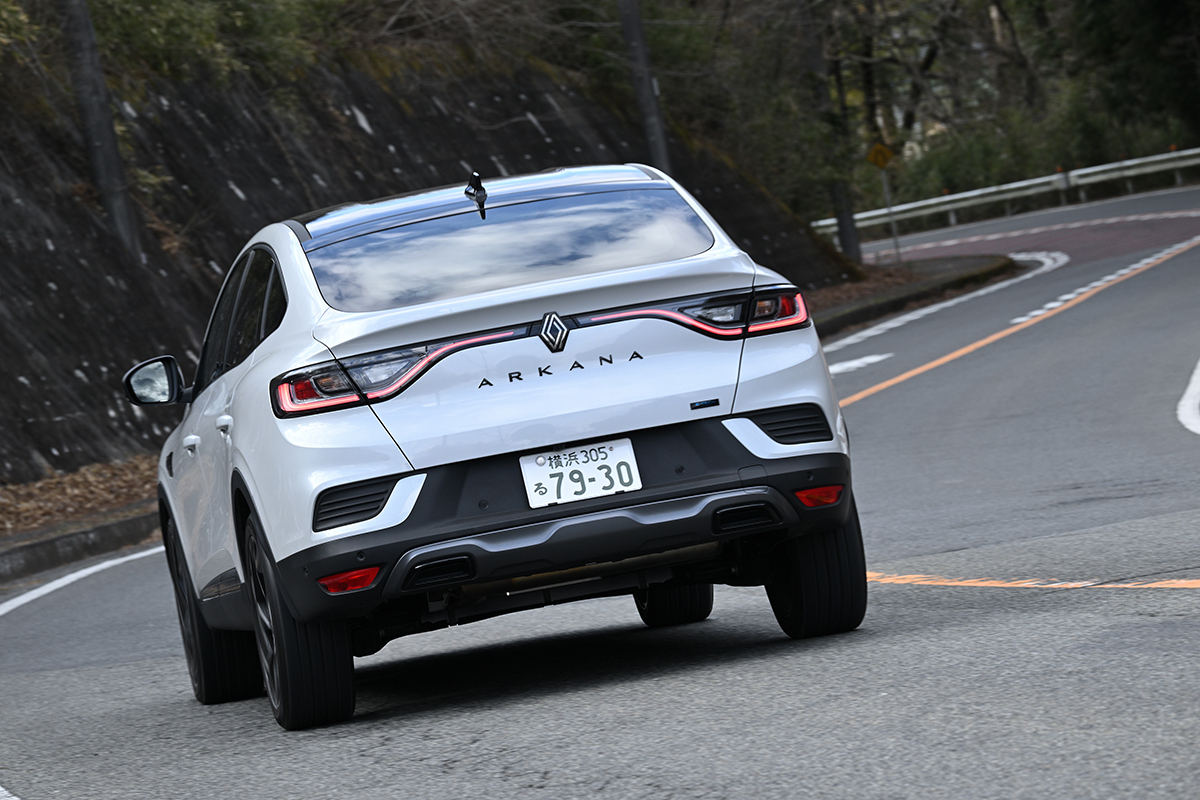 2024年10月のマイナーチェンジによりアルカナでは「esprit Alpine(エスプリアルピーヌ)」グレードのみが2モデル導入された。ラインナップは「エスプリアルピーヌE-TECHフルハイブリッド」と「エスプリアルピーヌ マイルドハイブリッド」で、今回は前者に試乗した