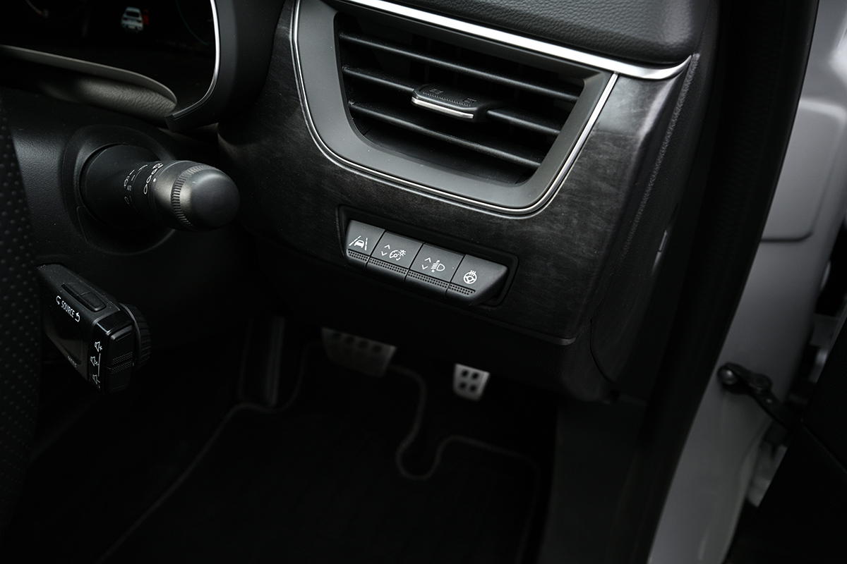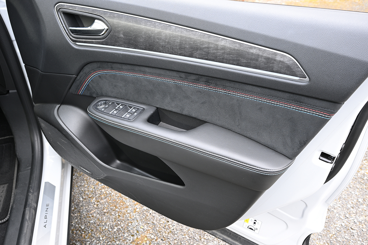 ドアトリムにはフレンチタッチなトリコロールステッチが施されている