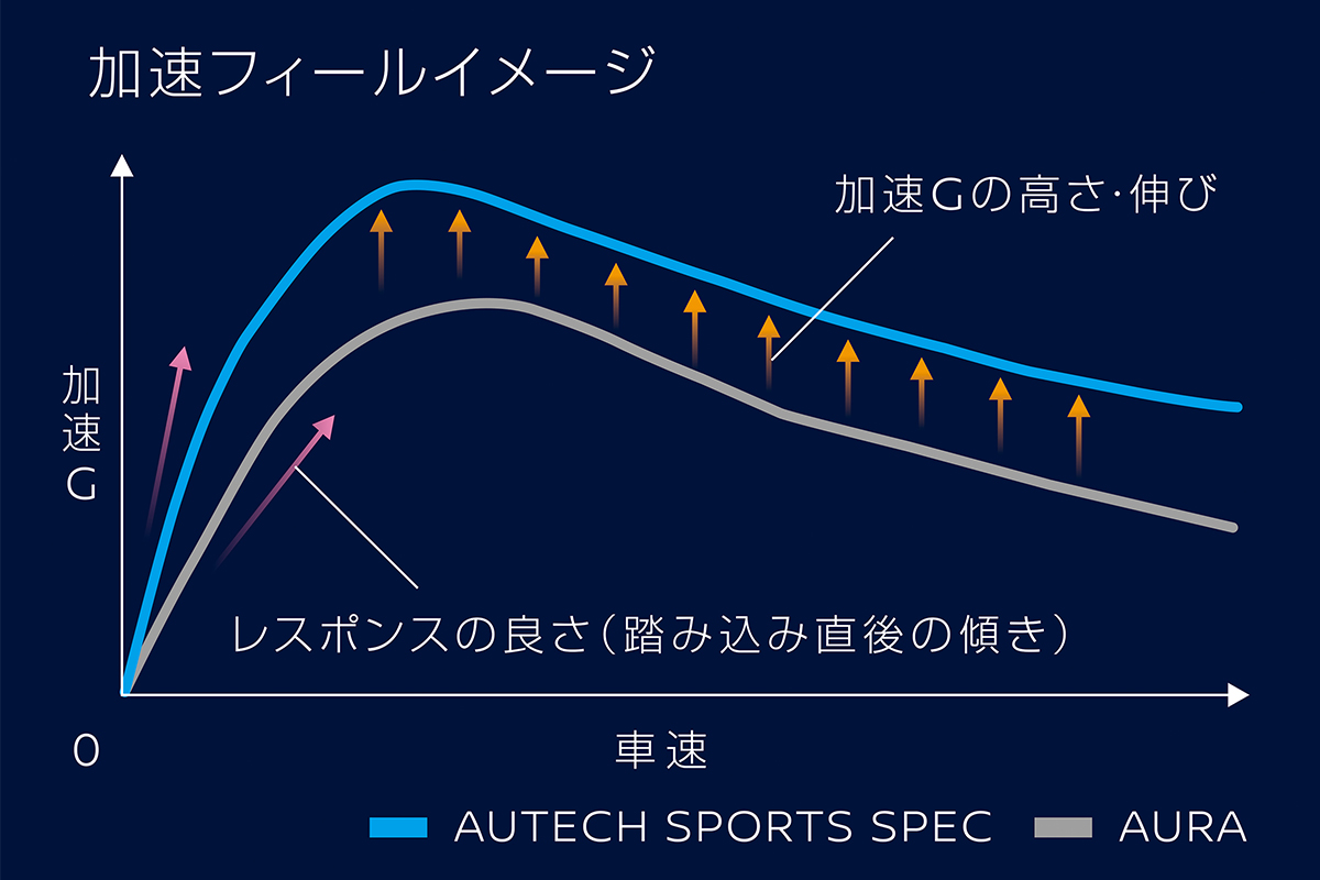 「オーラ AUTECH SPORTS SPEC」と通常モデル「オーラ」との加速フィールを比較したイメージ