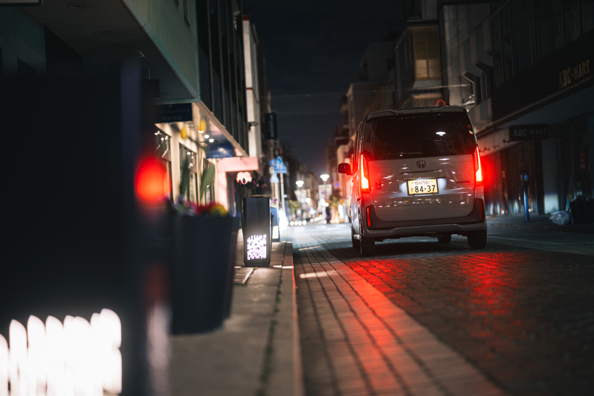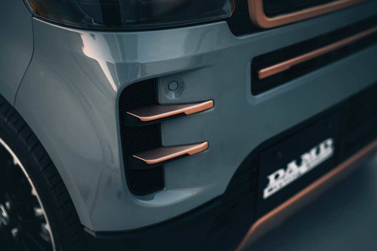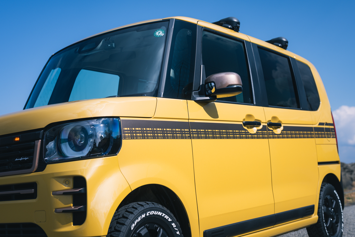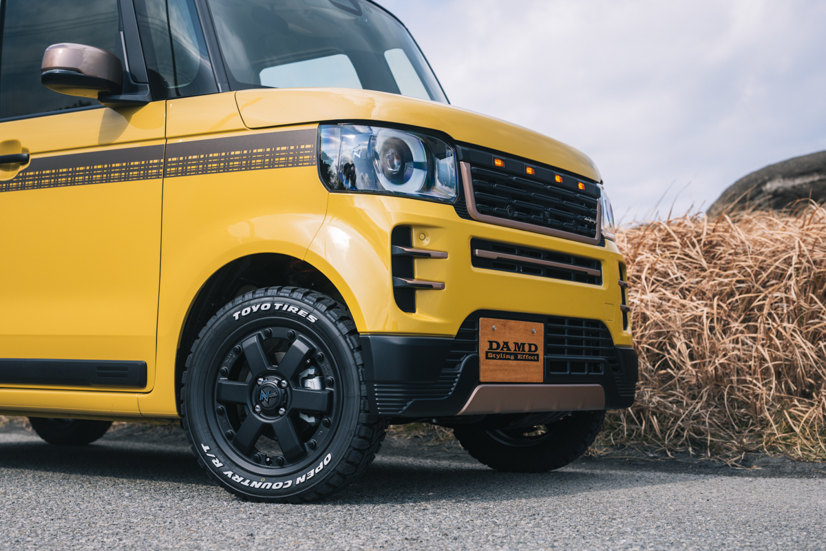 N-BOX CUSTOMを、よりワイルドな表情へと昇華させる「Rodney」。エレガントな街並みにもとてもマッチする