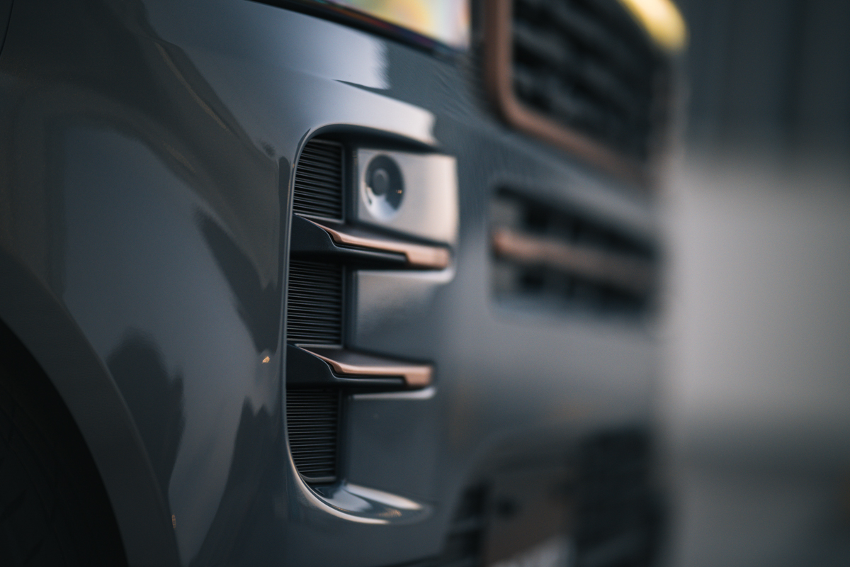 カッパーにペイントされたガーニッシュはそれぞれ別体のパーツ。一体成型のバンパー部にペイントしてから取り付けるというこだわり仕様となっている