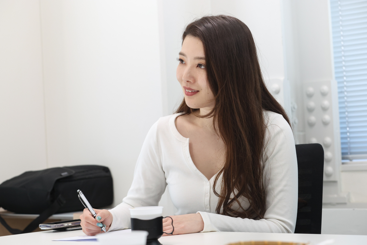 デザイナーのふたりにインタビューをする筆者(黒木美珠)