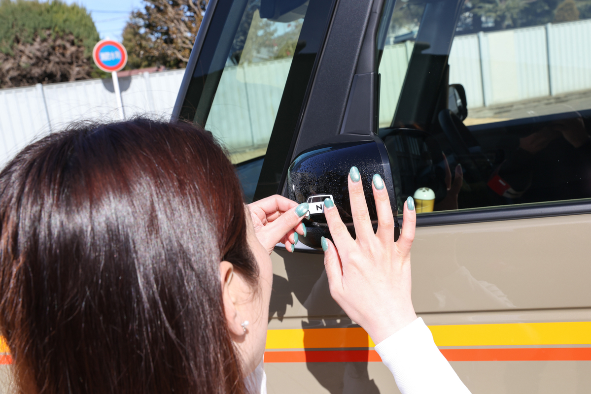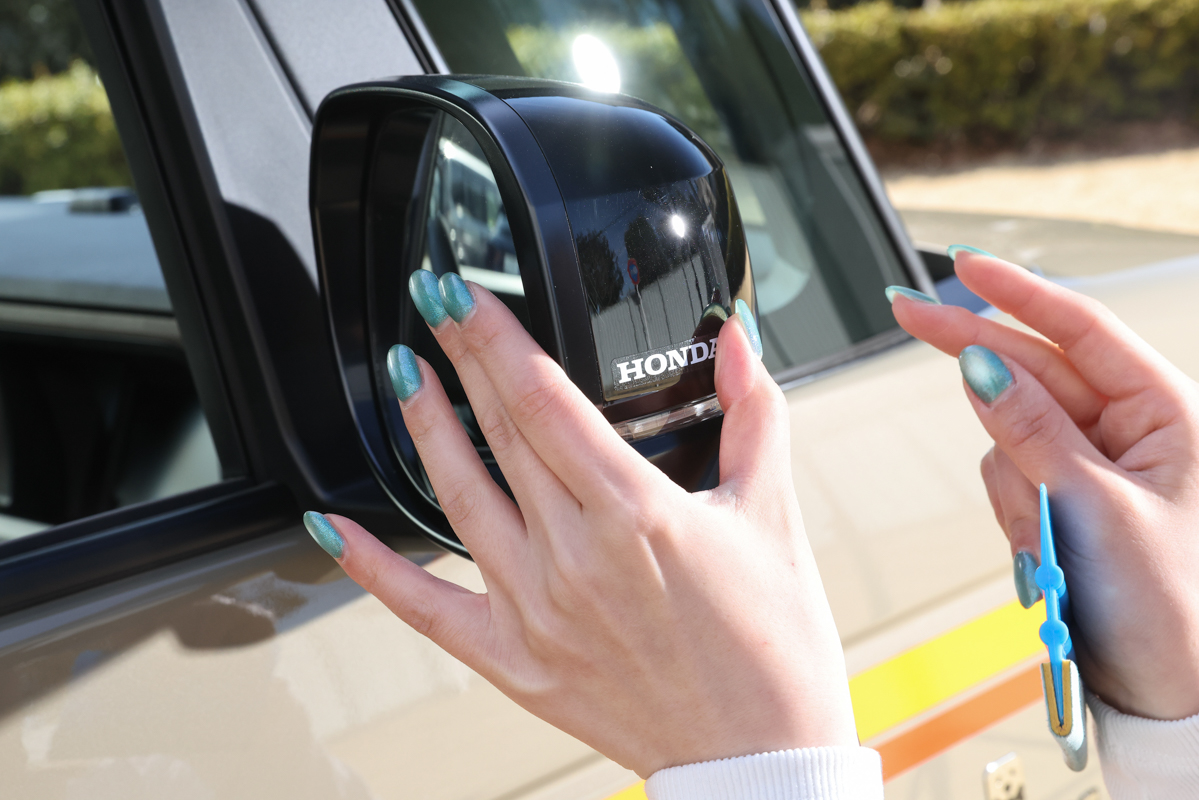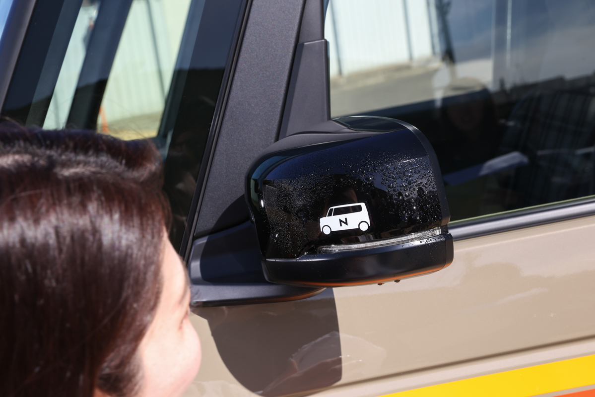 N-BOX JOY用の「デカールセット」を実際に貼ってみた筆者の黒木美珠