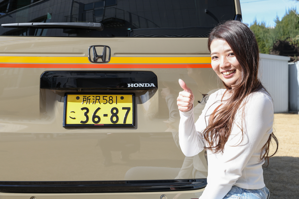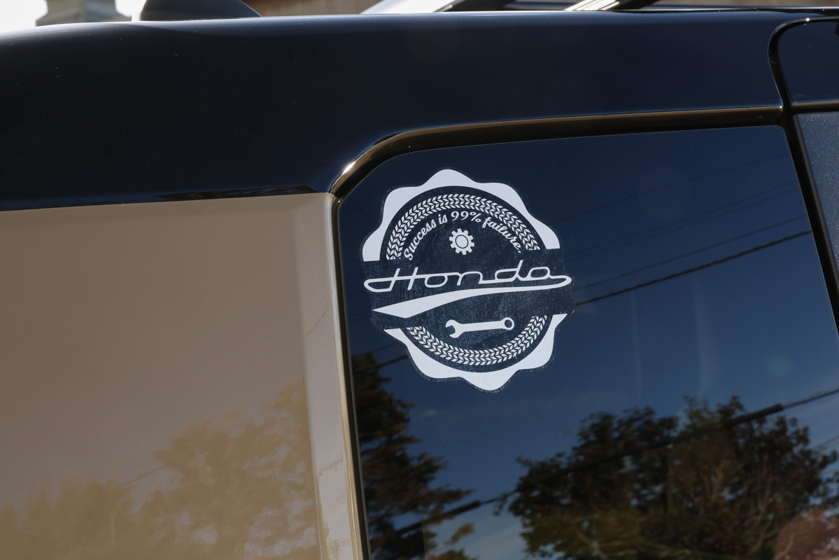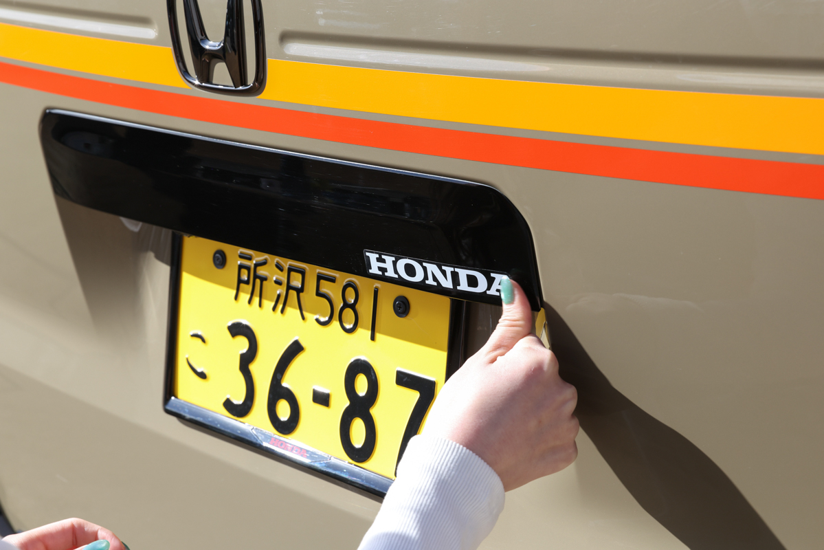 純正アクセサリーの「フロントグリル」と併せて、「HONDA」のロゴデカールをリアのライセンスプレートの上にある黒いパーツに貼るのが、三井さんおすすめのコーディネートだ