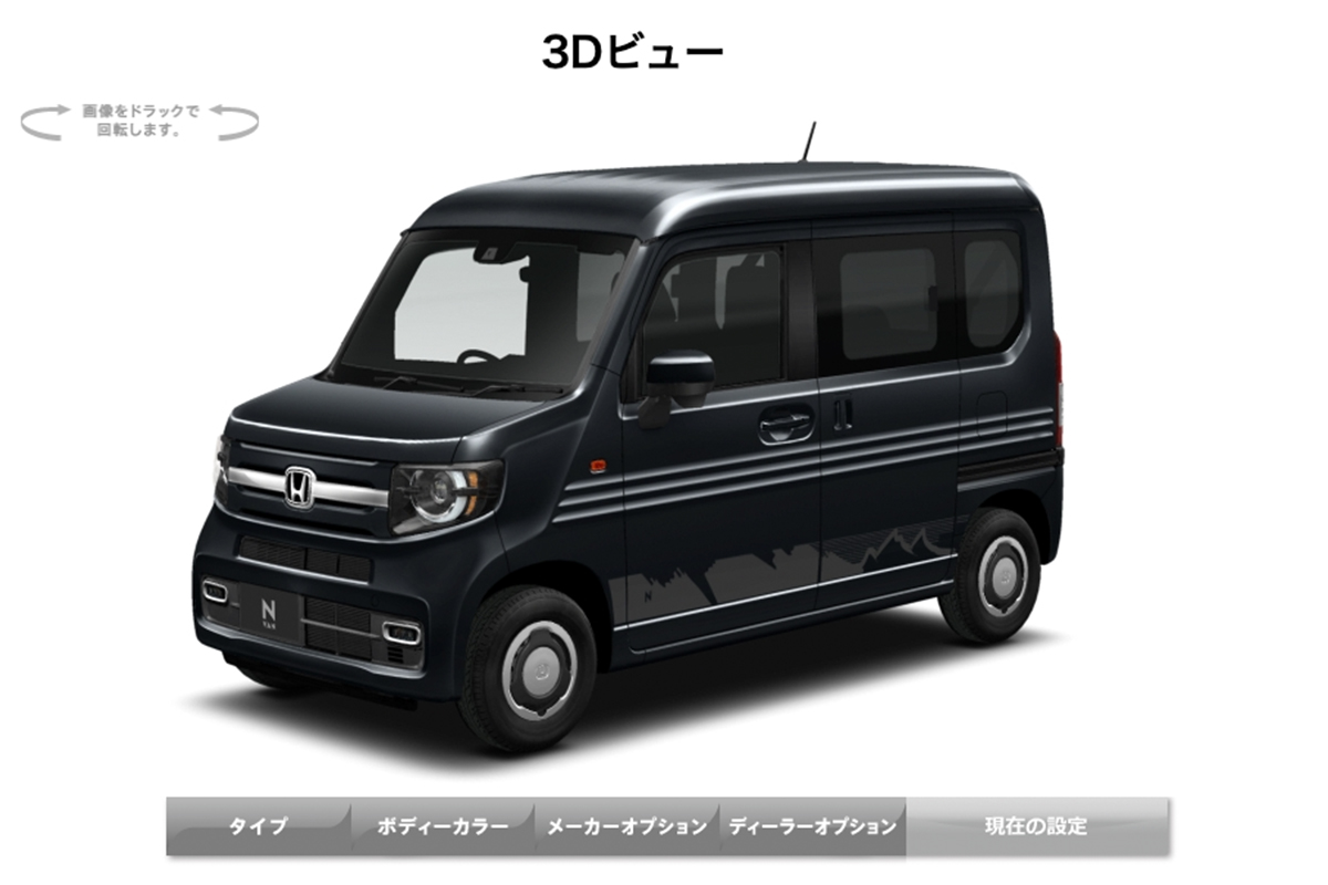 Honda公式サイトで展開されている「3Dビュー」のイメージ。タイプやボディカラーも選択できるため、よりデカールを施工したイメージが確認できる