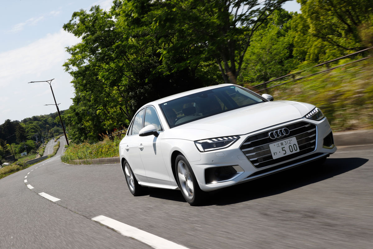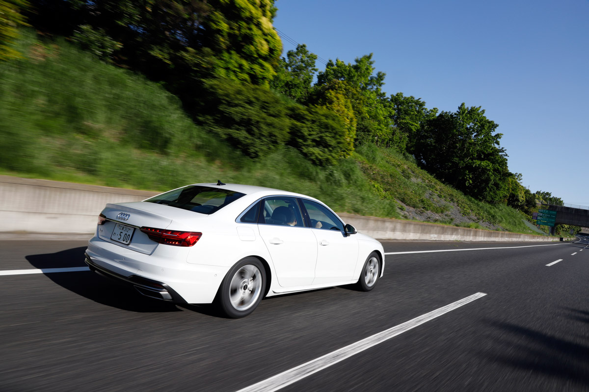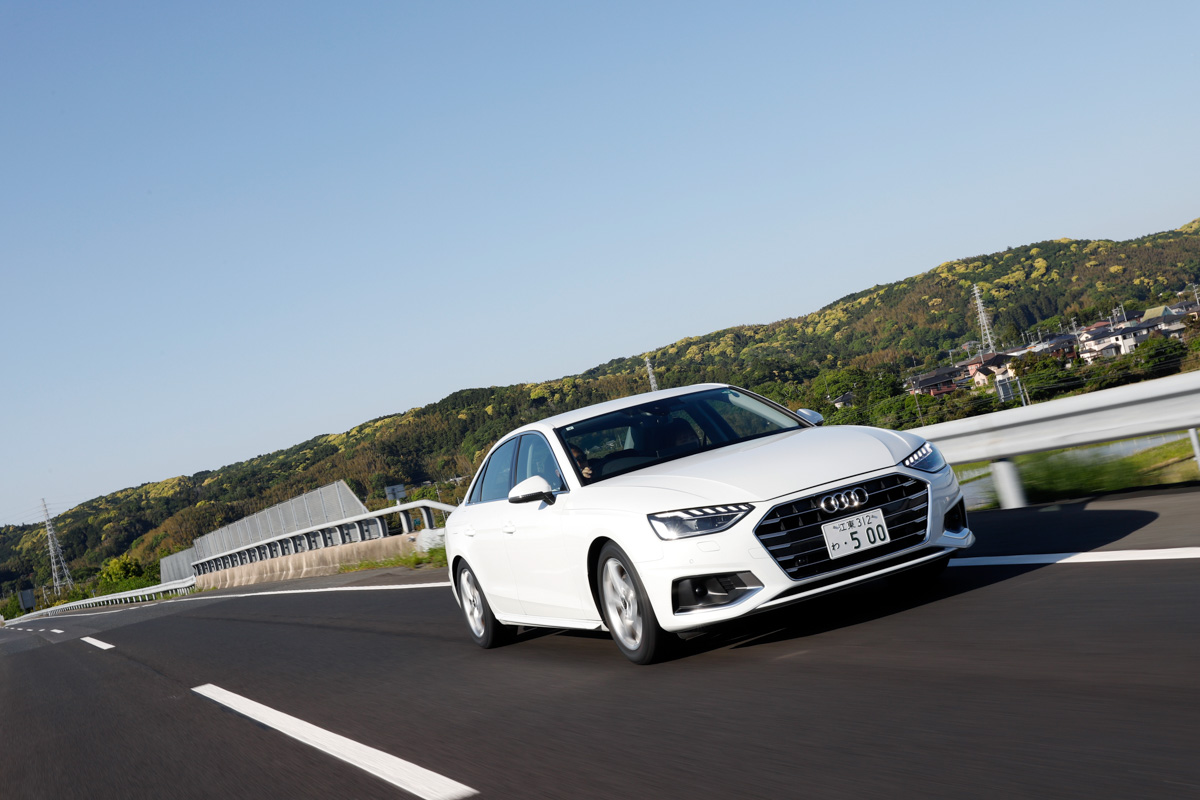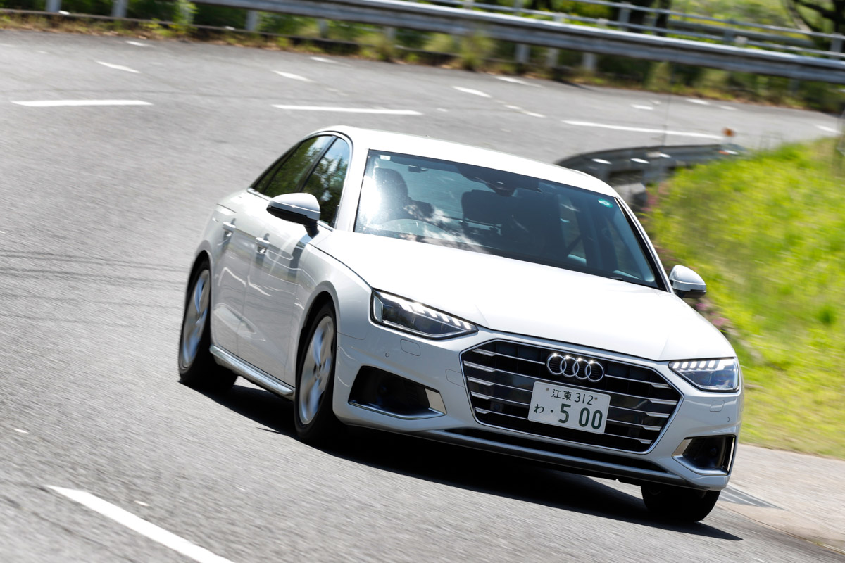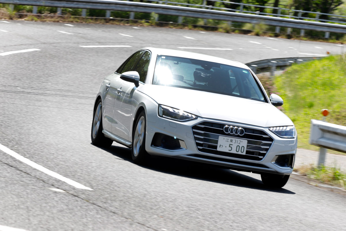 ワインディング路も走行。高剛性なショルダーの恩恵によって、A4が本来持つステアリングのレスポンスは劣ることなく高い領域を維持している