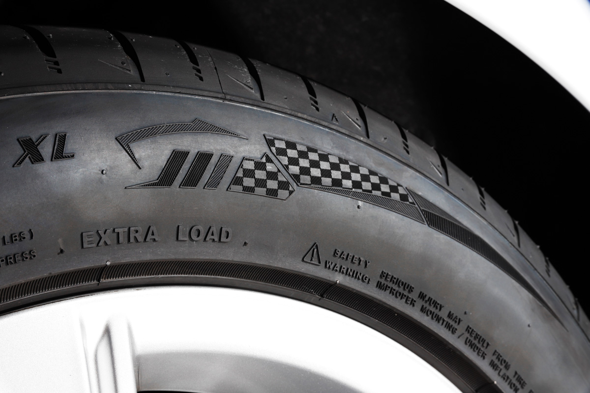 サイドウォールにはチェッカーフラッグの模様もあしらわれている