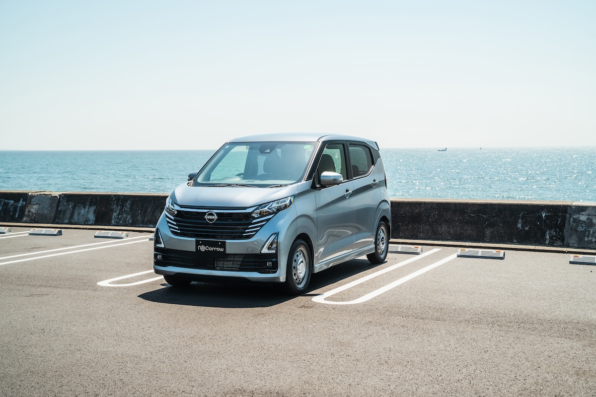 日産「デイズ」にネオキャロのグレー×クロームキャップを取り付けた状態