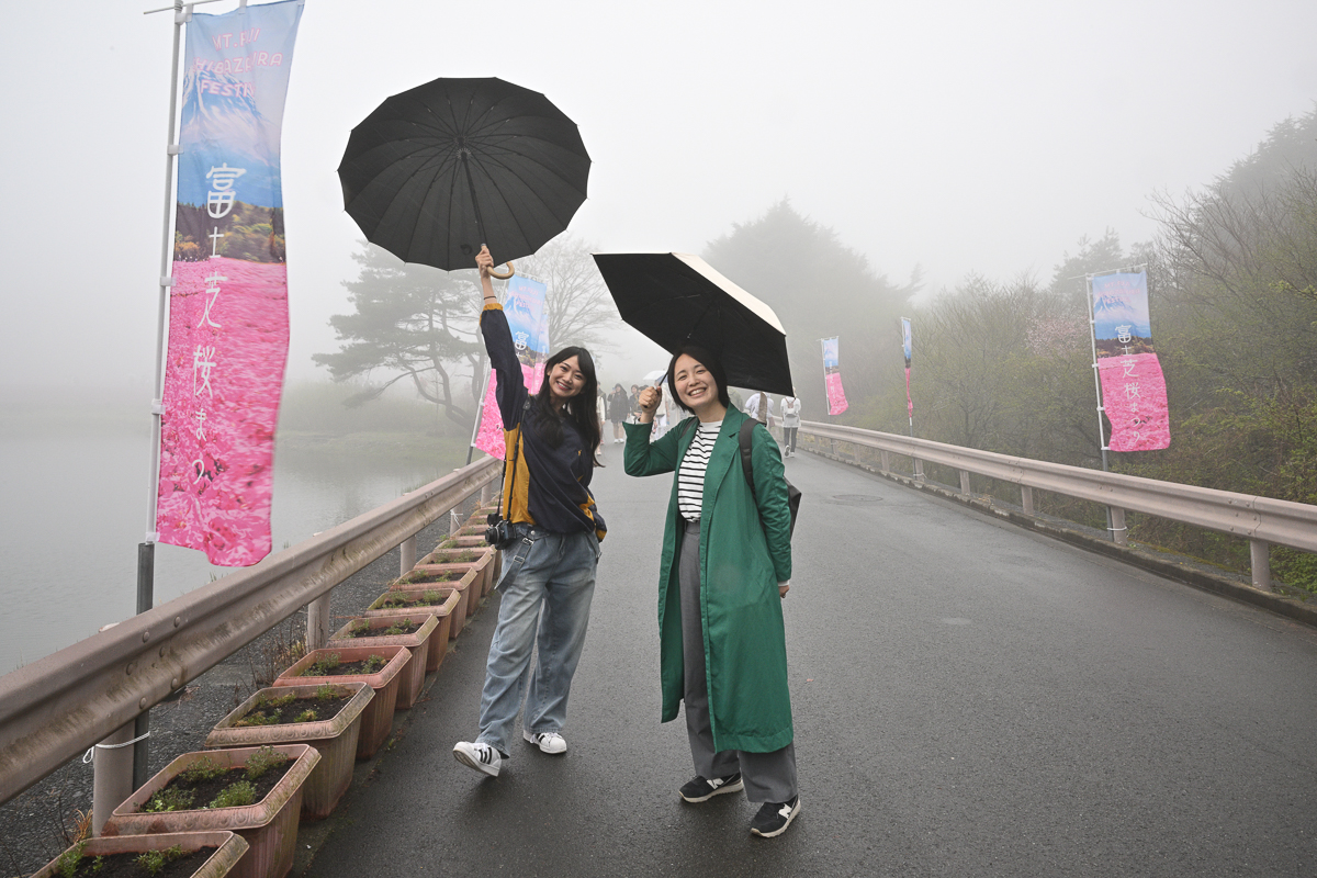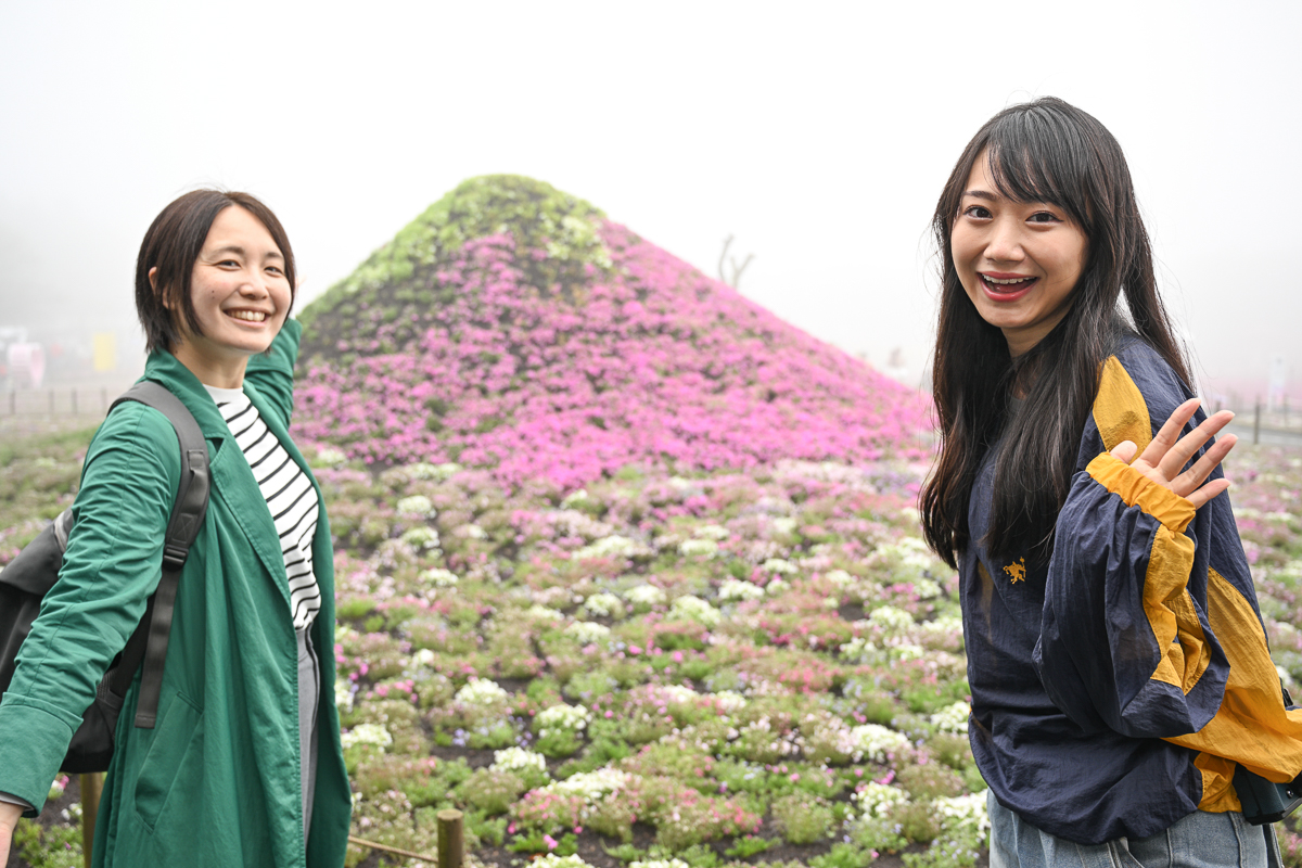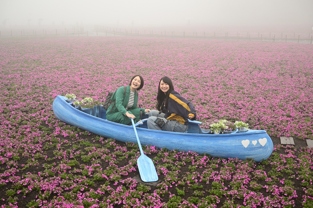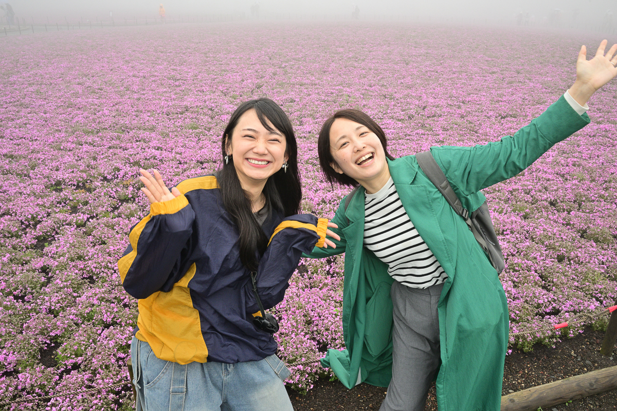 「富士芝桜まつり」会場に到着! だけど…あいにくの雨で、辺りは霧が立ち込めていました
