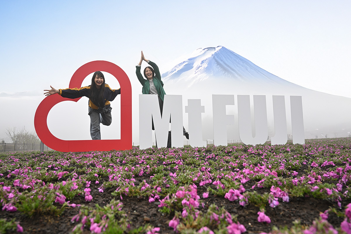 「富士芝桜まつり」会場にある芝桜で作られた富士山