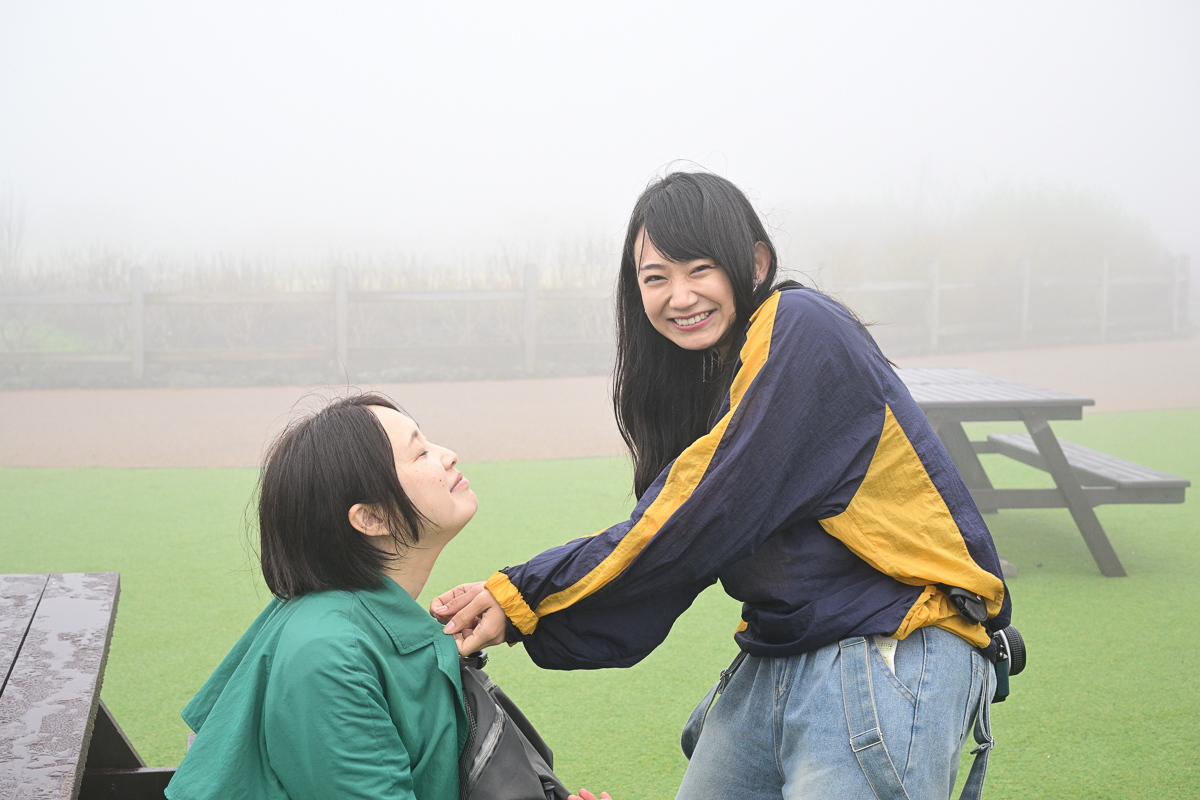 スタッフのお願いで運転中の伊藤梓さんを撮影してくれている相沢菜々子さん
