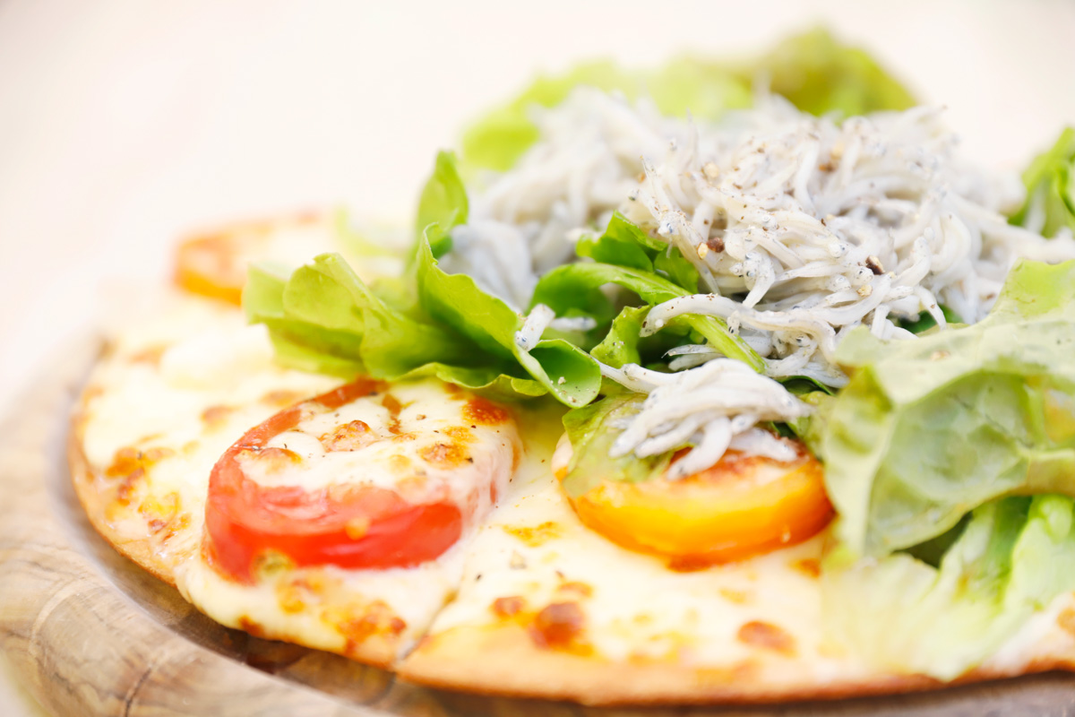 近海で水揚げされたしらすをふんだんに使ったピザ