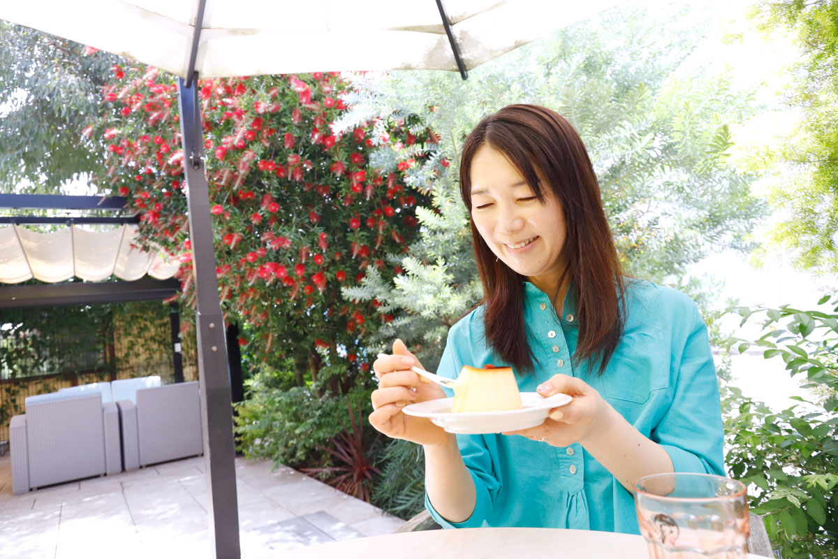 マーロウ逗葉新道店でプリンを選ぶ筆者のまるも亜希子  ※ラムレーズンなどのプリンは父の日までの期間限定です