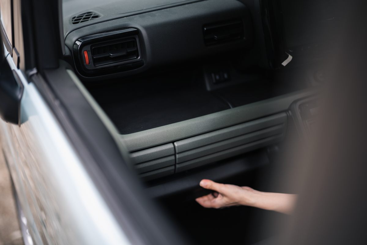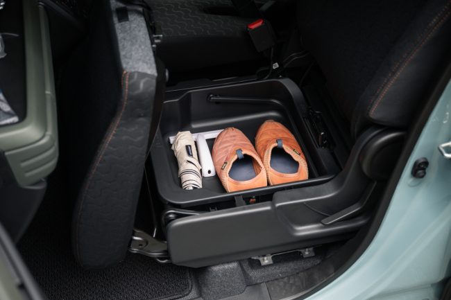 助手席下に配置される「シートアンダーボックス」は、取り外し可能で汚れても手入れが簡単なので、靴などを収納するという使い方も