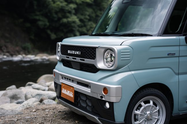 この“カッコかわいい”レトロフェイスが14万800円(税込み)で手に入れられるとは驚き。人気車ゆえに街で見かける機会も多いスペーシアギアだからこそ「他車と差をつけたい」と思う人は多いハズだ。なお「オフブルーメタリック」のみ塗装済み品としてラインナップされる