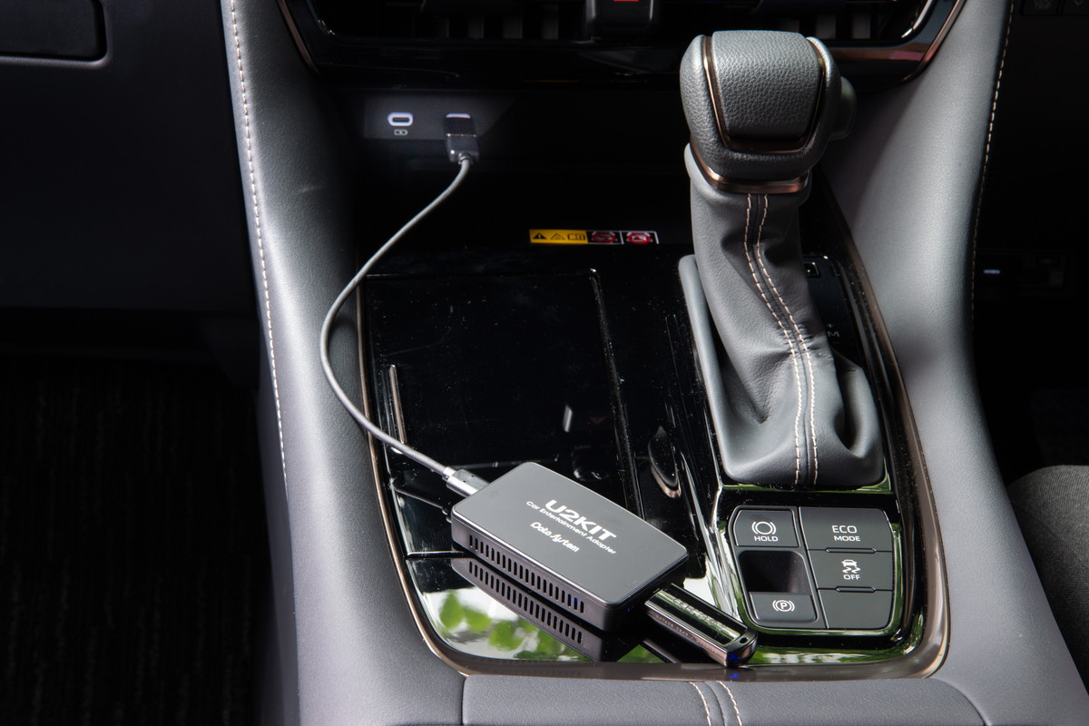 「U2KIT」のUSBポート(タイプC)とクルマ側のUSBポートをケーブルで接続