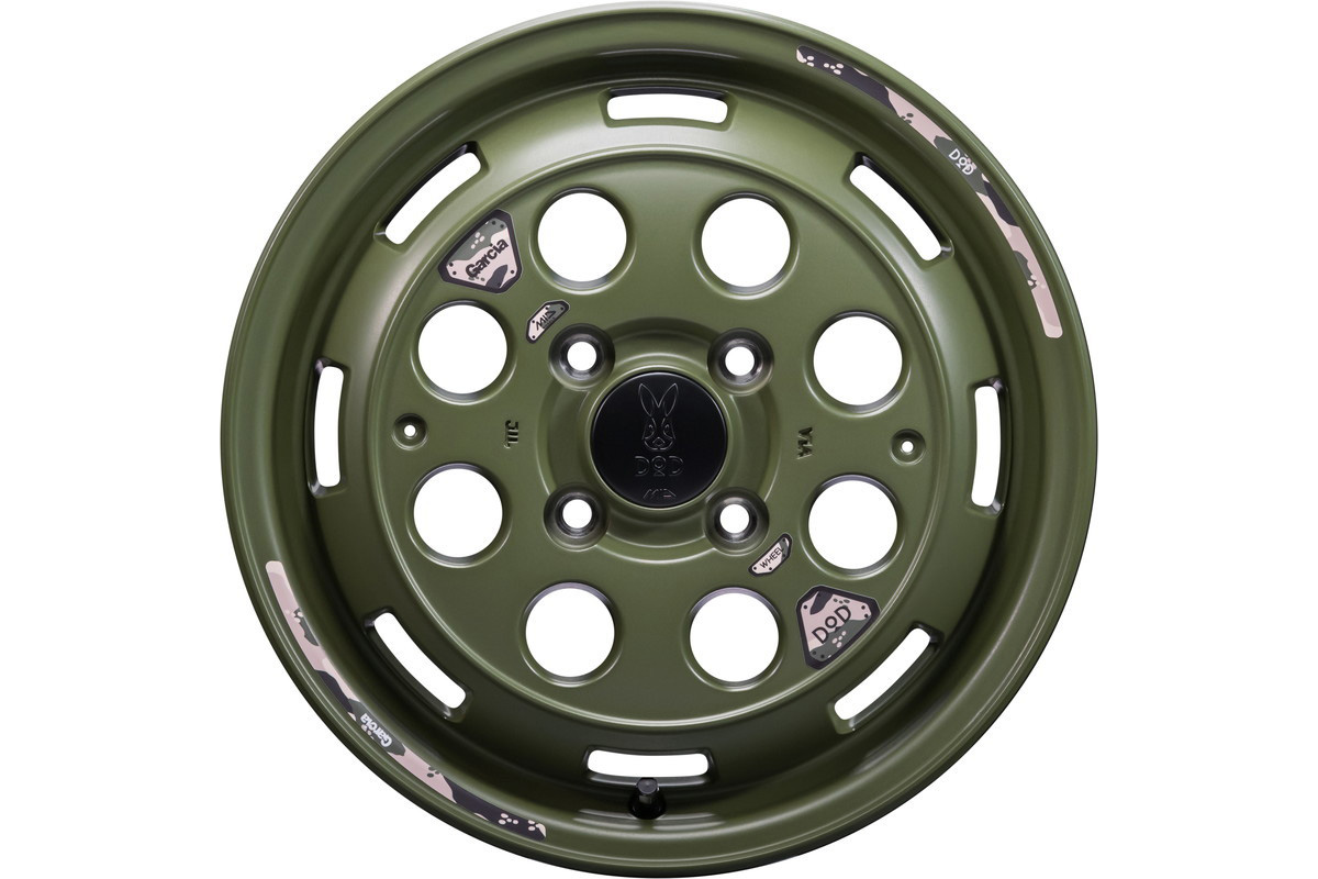 「ウシャリントバリ」14インチ4.5J-100。色はセミグロスODグリーン