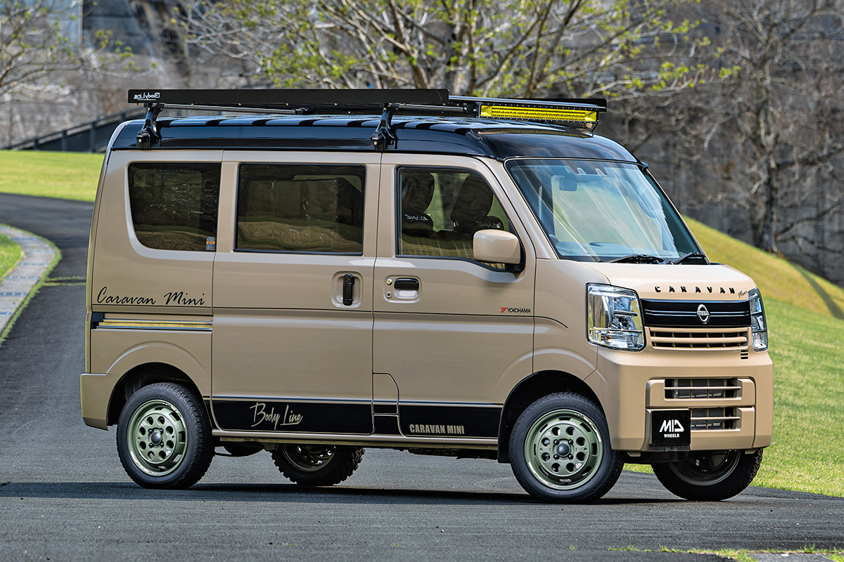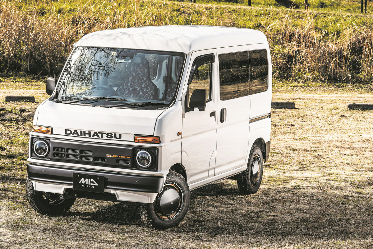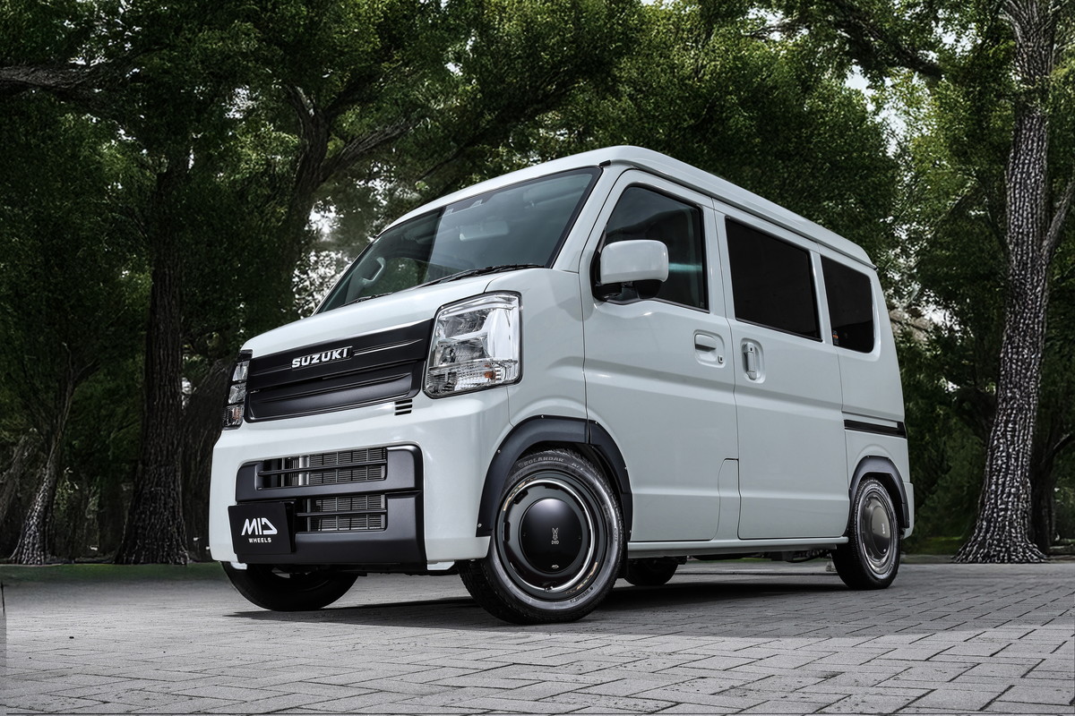 「ウシャリントバリ」をスズキの軽「エブリイ」に履かせた例(画像はセンターパッケージを装着した状態)