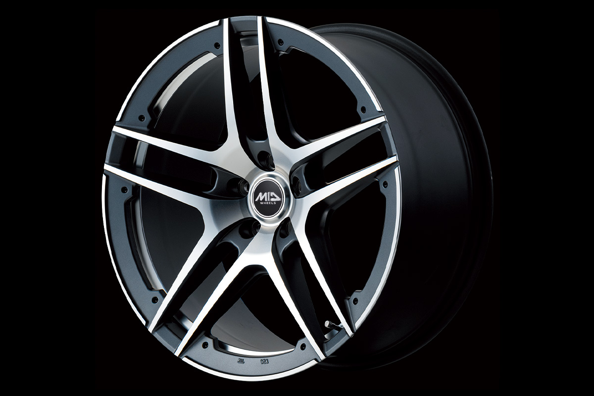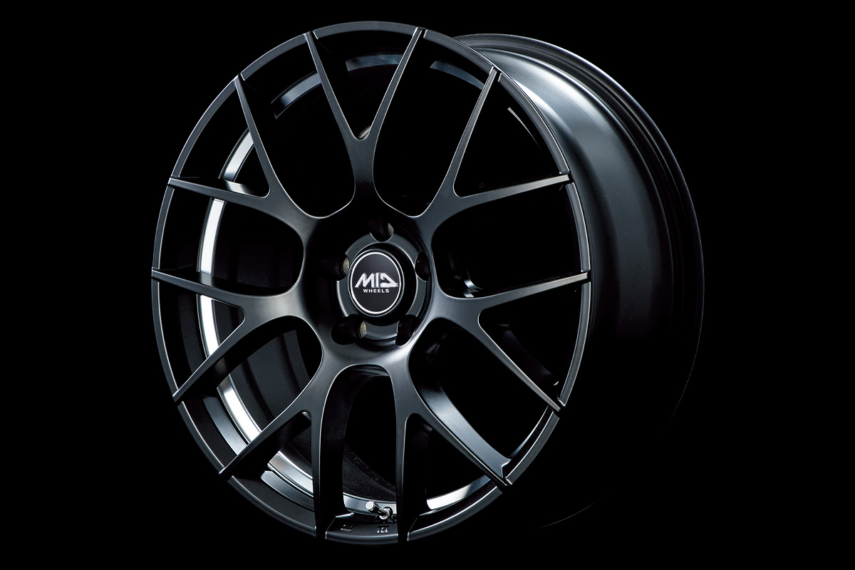 MIDホイールのロゴ。豊富なラインナップからは、愛車の個性を引き出す理想の1本が見つかるはず