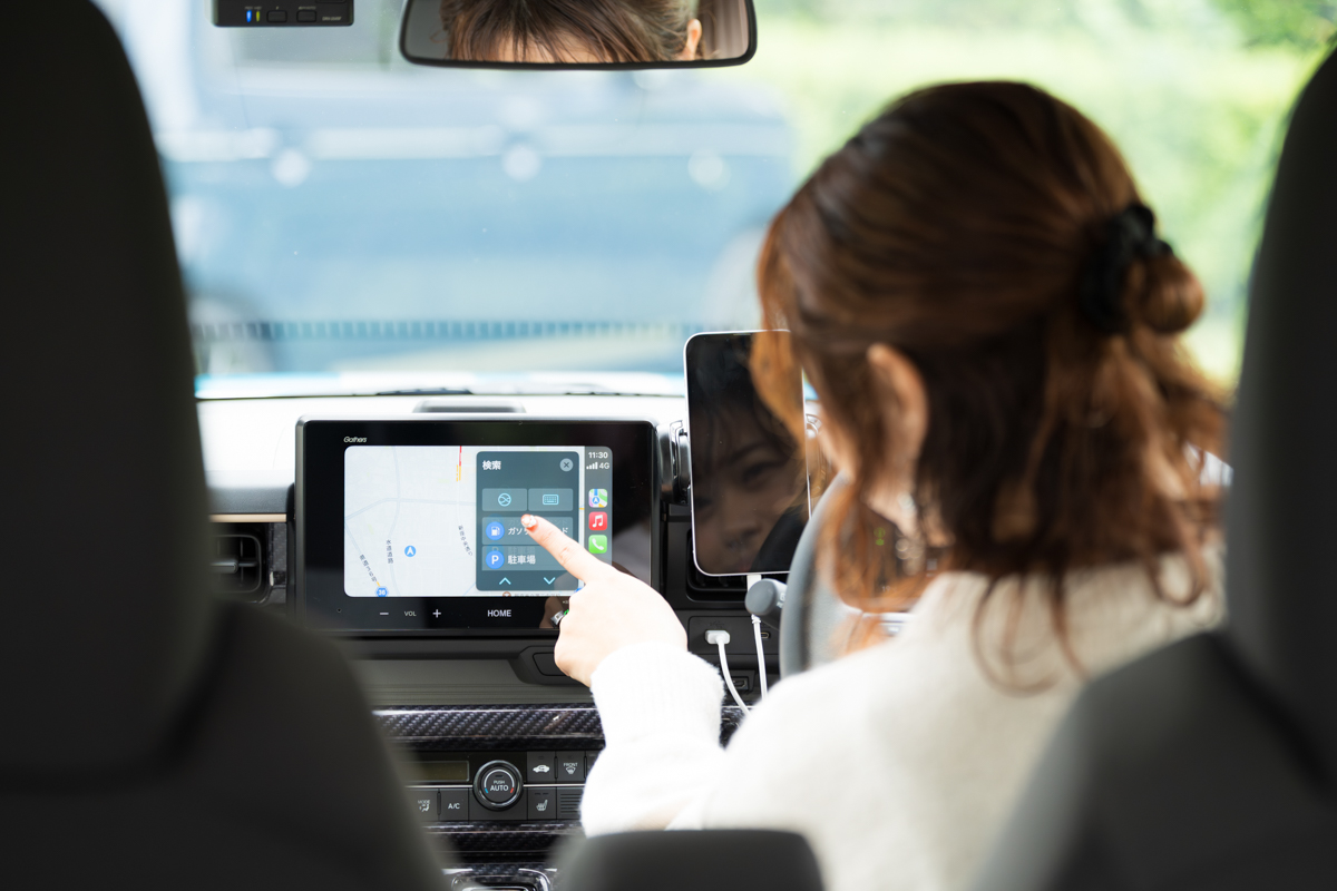 カーメイトと共同開発したホンダN-ONE e:専用設計のスマートフォンホルダー「CX406K」。「用品選びもクルマを買ったときの楽しみの一つ。でも、スマホホルダーは汎用品だとしっくりするものが少ないので、何個も買い直すことも。専用品などのルーバーもちゃんと動くし快適です」(やっさん)