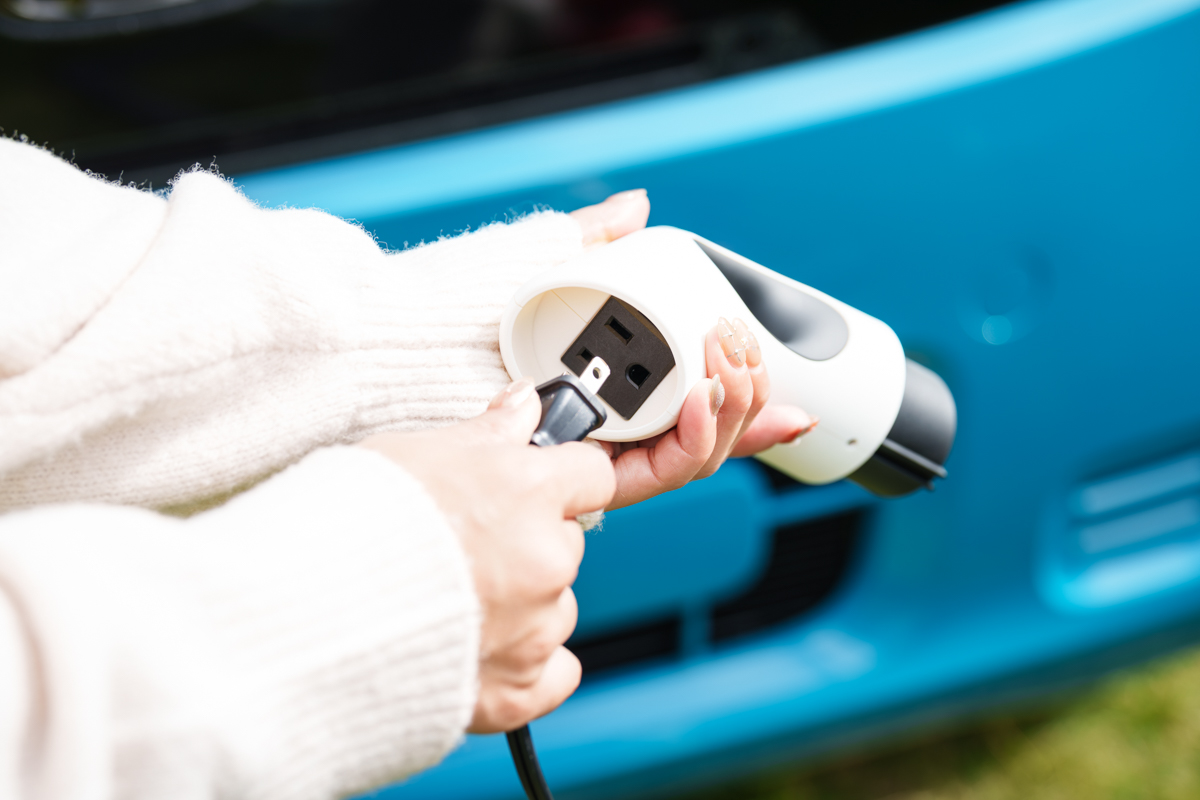 「外部電源入力キット」を使えば、クルマに搭載された電力をAC外部給電器経由で車内に引き込み、安全に100Vの電源として使用可能(画像は外部接続ポート部)