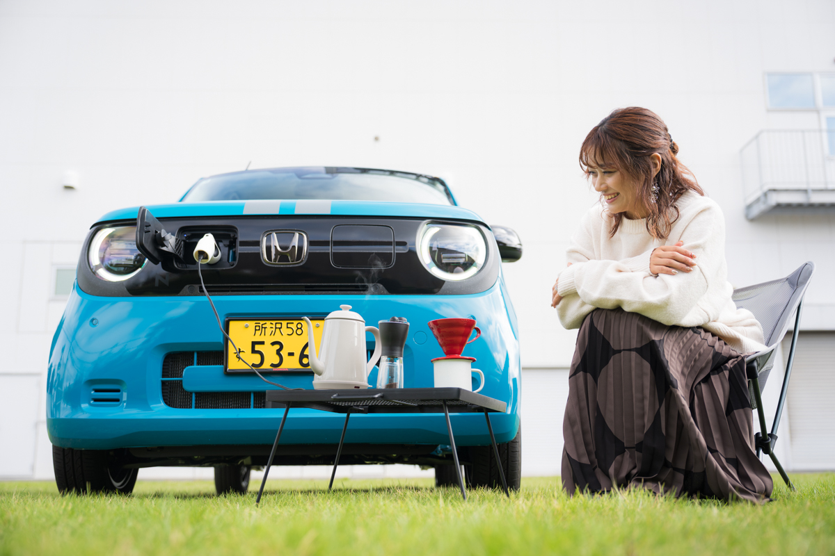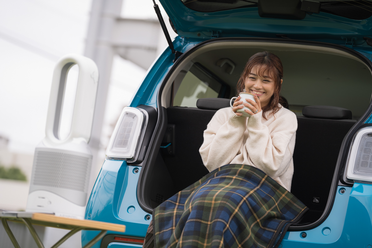 最大1500Wまで供給できるため、ファンヒーターも屋外で使用可能。アクティビティーはもちろん、災害時の備えとしてもN-ONE e:は有効なのだ