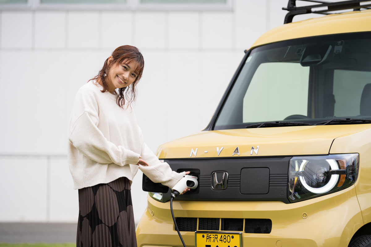 Honda愛あふれる安枝瞳がママ目線で新「N-ONE e:」をチェック! ホンダアクセスの純正アクセサリーが描く安心安全な“EVライフ”とは?【PR】
