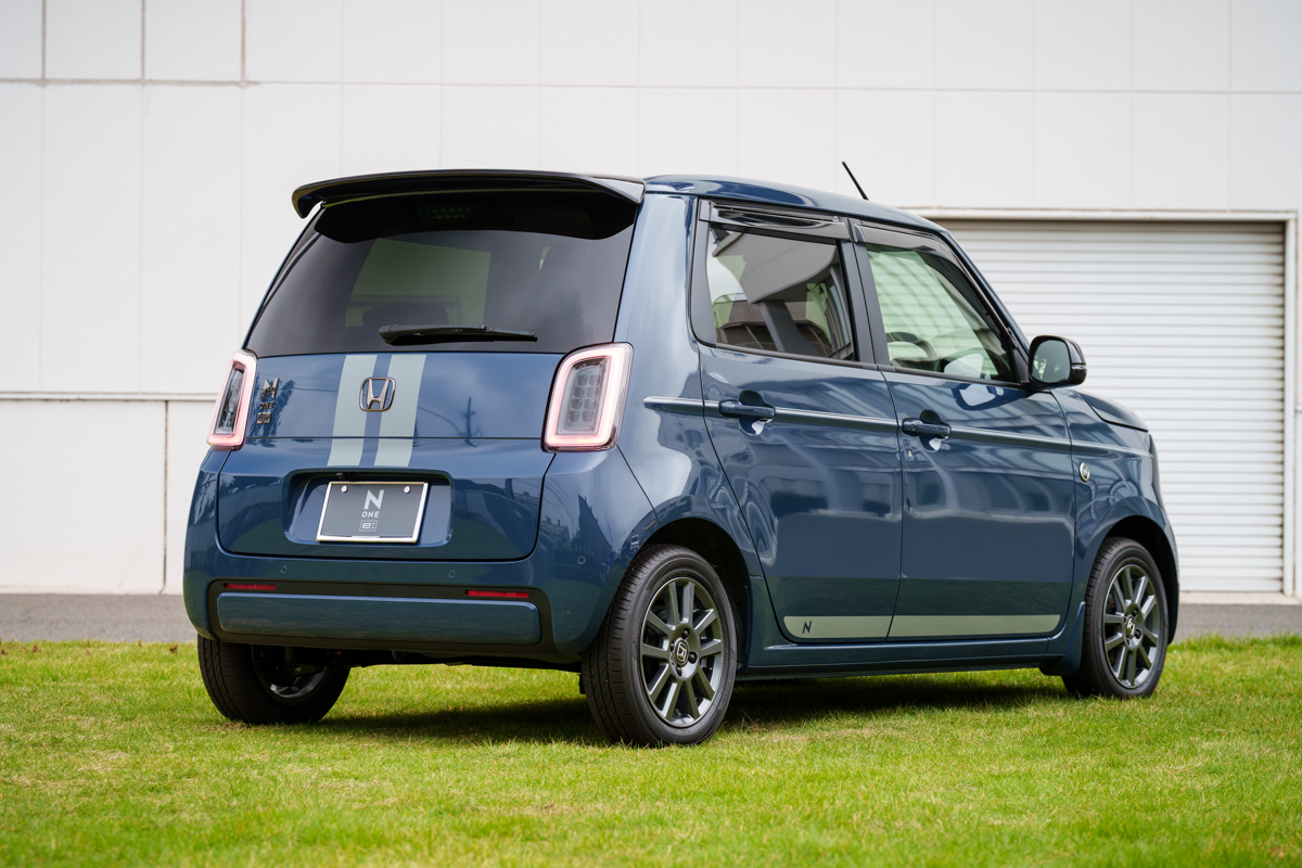ホンダアクセスでは、オプションパーツでN-ONE e:のデザインをもっと楽しめるスタイルも提案。写真の仕様はシルバー加飾が上質な「PREMIUM STYLE」(「e:G」グレード/純正アクセサリー装着車/シーベッドブルー・パール)