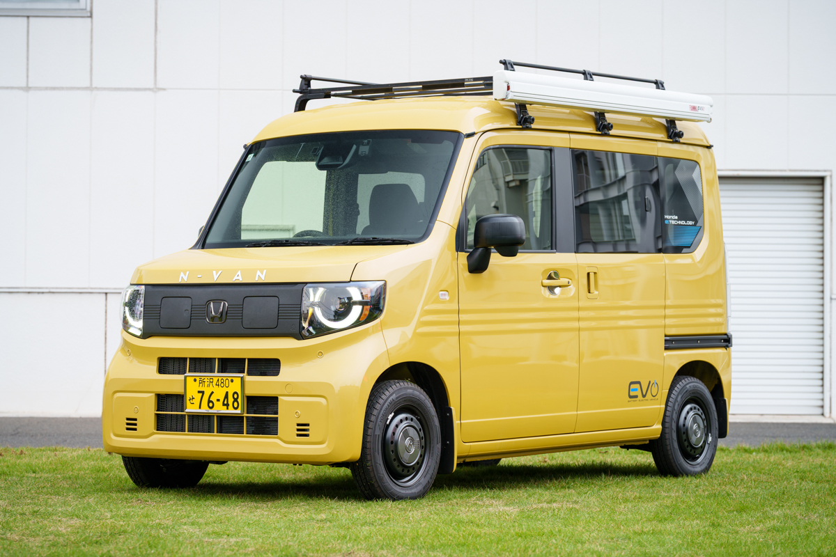 クルマをもっとアクティビティーに活用したい人には「N-VAN e:」という選択肢もアリ。画像は「e: FUN」グレード、純正アクセサリー装着車(オータムイエロー・パール)