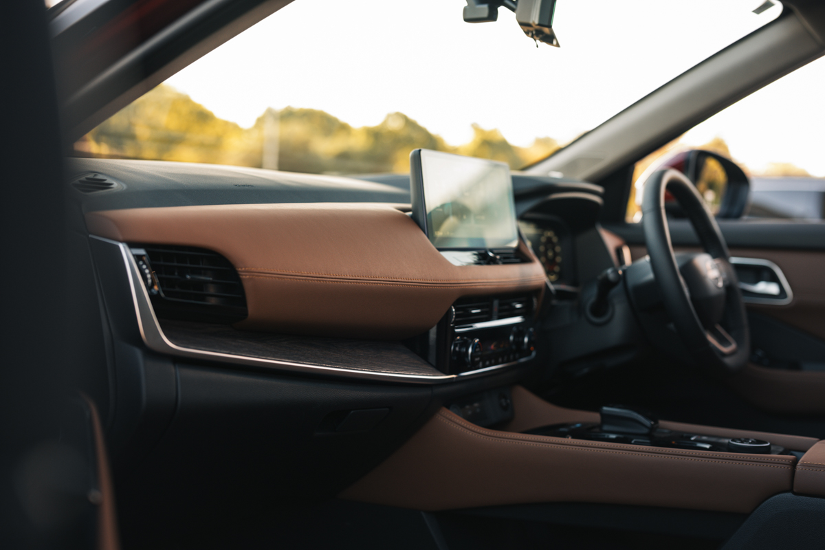 大人が長く付き合いたくなる質感を生み出した、エクストレイルのインテリア。 ただの移動が、落ち着きの時間へと変わる上質な仕立てだ
