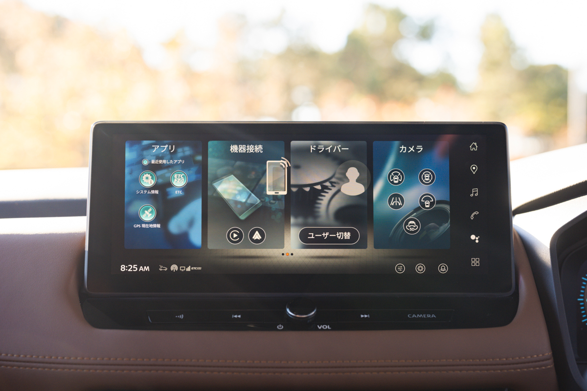 マイナーチェンジを機に改められた深いブラウンの内装色は、同乗者の心をそっと落ち着かせる力がある。 安心は、こうした細部から生まれる