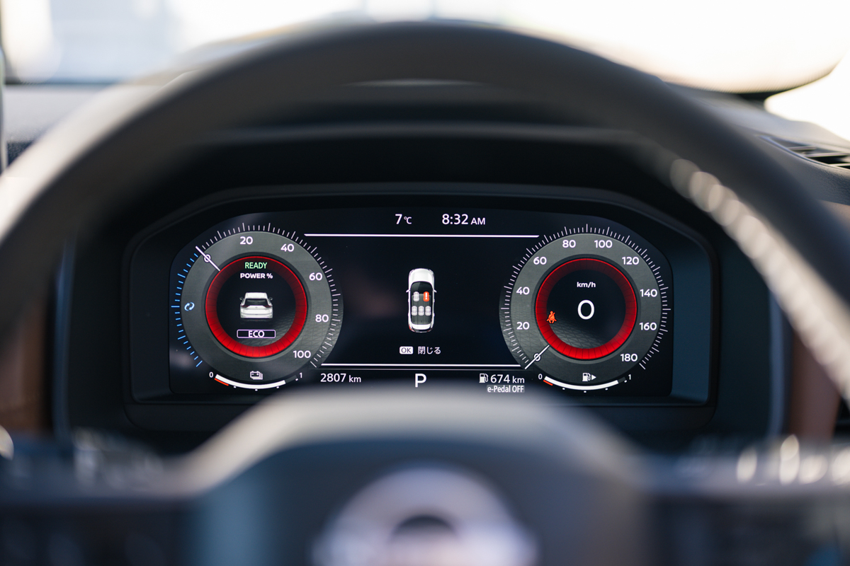 ステアリングに配置された「プロパイロット」のスイッチを押せば、アクセルもブレーキもさりげなく支えてくれる。頼りすぎず、任せられる安心感がある