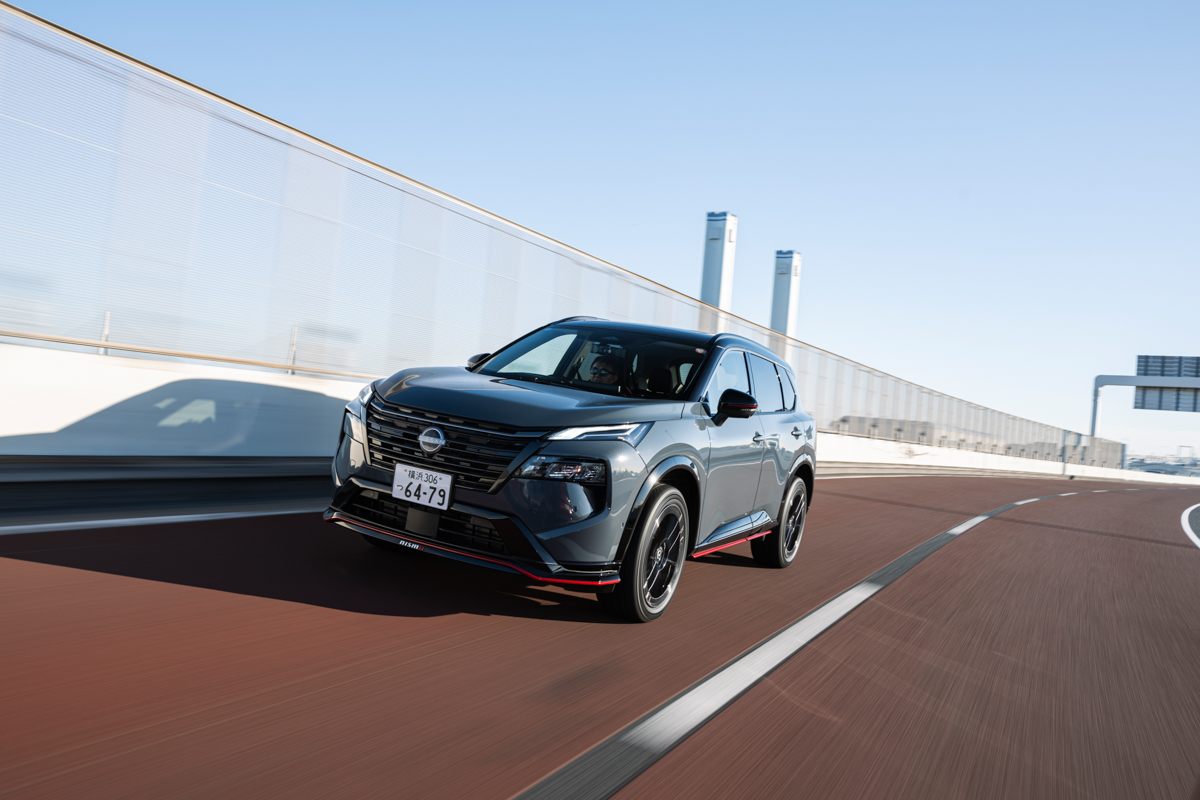 エクストレイル NISMO。標準車が持つ上質な雰囲気は残しつつも、スポーティな味付けに仕上げた特別なクルマだ(画像のグレードは「NISMO」Advanced Package e-4ORCE・NISMOステルスグレー/スーパーブラック2トーン)
