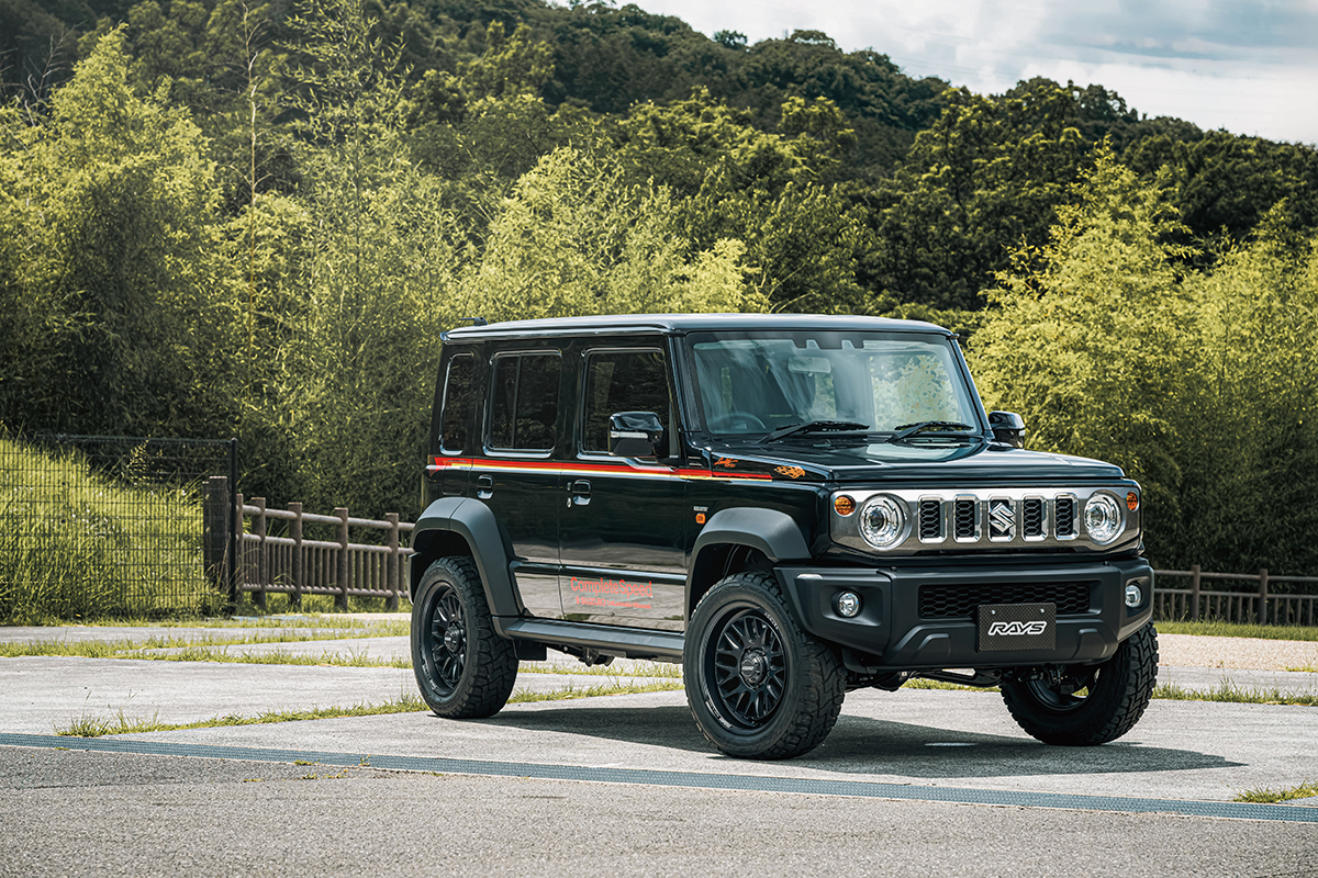 スズキ「ジムニーノマド」。RAYSの独自技術により、ホイールに奥行きが感じられる