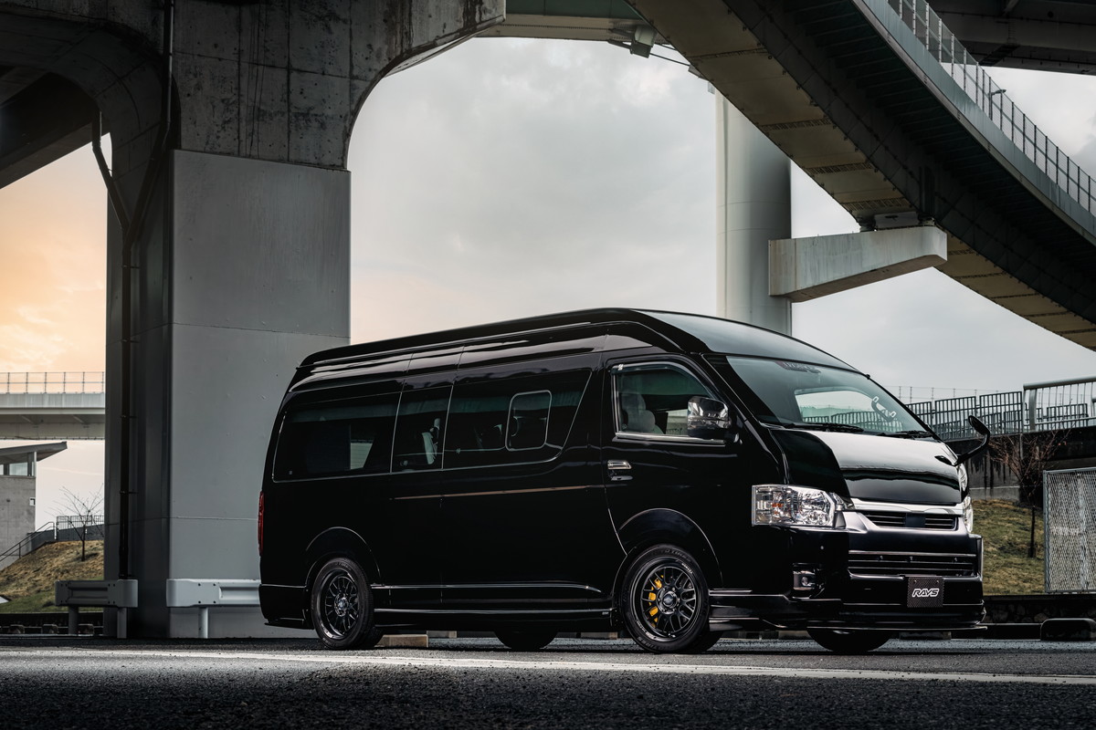 HOMURA 2x9L-RAを装着したトヨタ「ハイエース」。カラーはセミグロスブラック(BOJ)