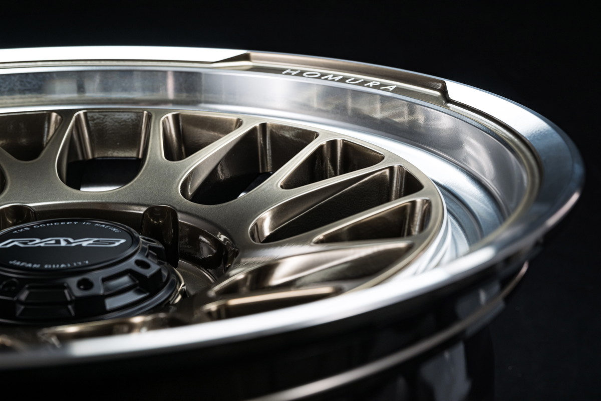 RAYSの特許技術である「A.M.T.(アドバンスド・マシニング・テクノロジー)」によって、リムに“HOMURA”のマシニングレターを刻印している